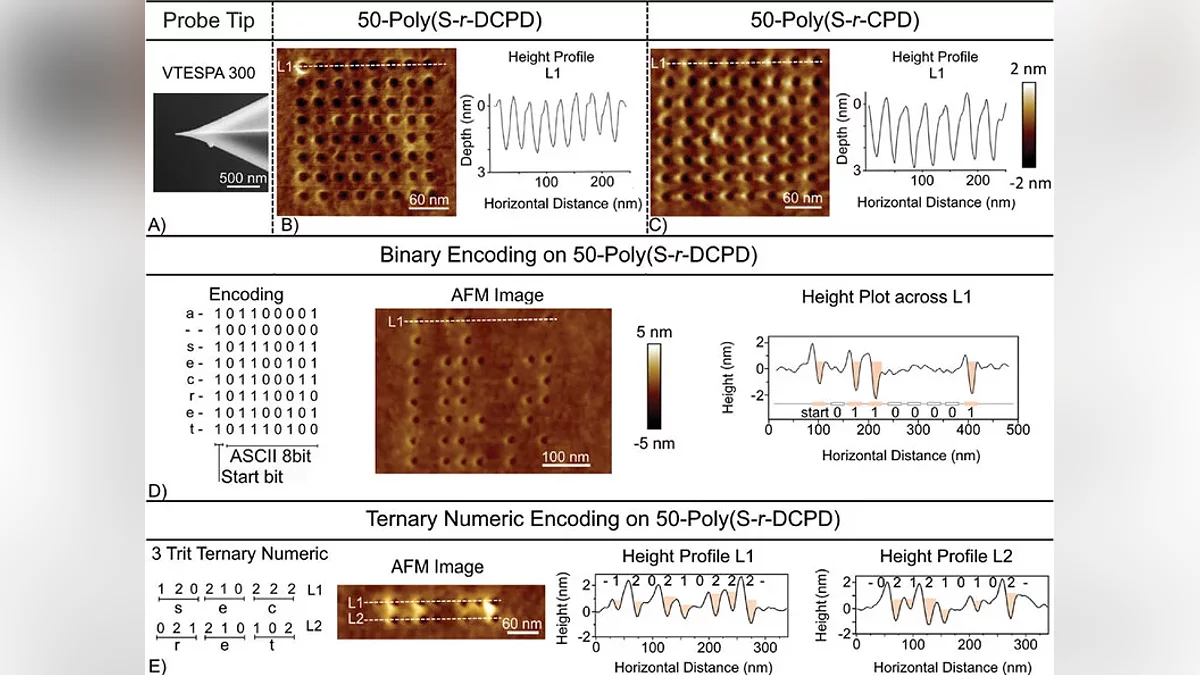 В качестве материала для носителя выбрана недорогая полимерная плёнка на основе серы и дициклопентадиена. Она позволяет создавать отверстия различной глубины и легко восстанавливается при нагревании до 140 °C. Это открывает перспективы для более энергоэффективных технологий хранения данных с высокой плотностью записи и устойчивостью.