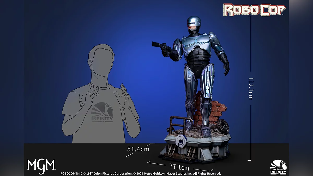Infinity Studio представила новую коллекционную фигурку Робокопа из культового одноимённого фильма 1987 года. Статуэтку выпустят в масштабе 1:2 (112 сантиметров в высоту).