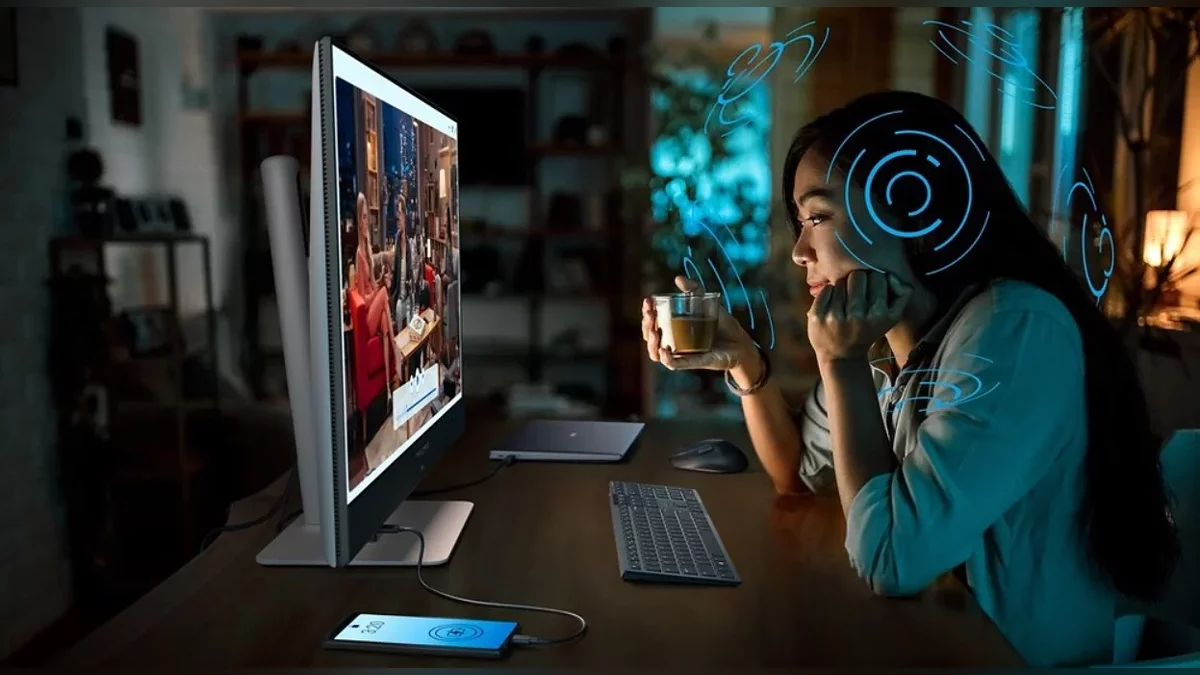 Однако главной особенностью новинки стал встроенный искусственный интеллект, который отслеживает положение головы пользователя через инфракрасный датчик, расположенный в нижней части рамки экрана. С помощью этого датчика ИИ настраивает звуковую сцену в реальном времени, создавая эффект полного погружения в происходящее на экране. В наличии пять динамиков мощностью по 5 Вт, которые позволяют монитору воспроизводить звук с учётом индивидуальных особенностей восприятия.