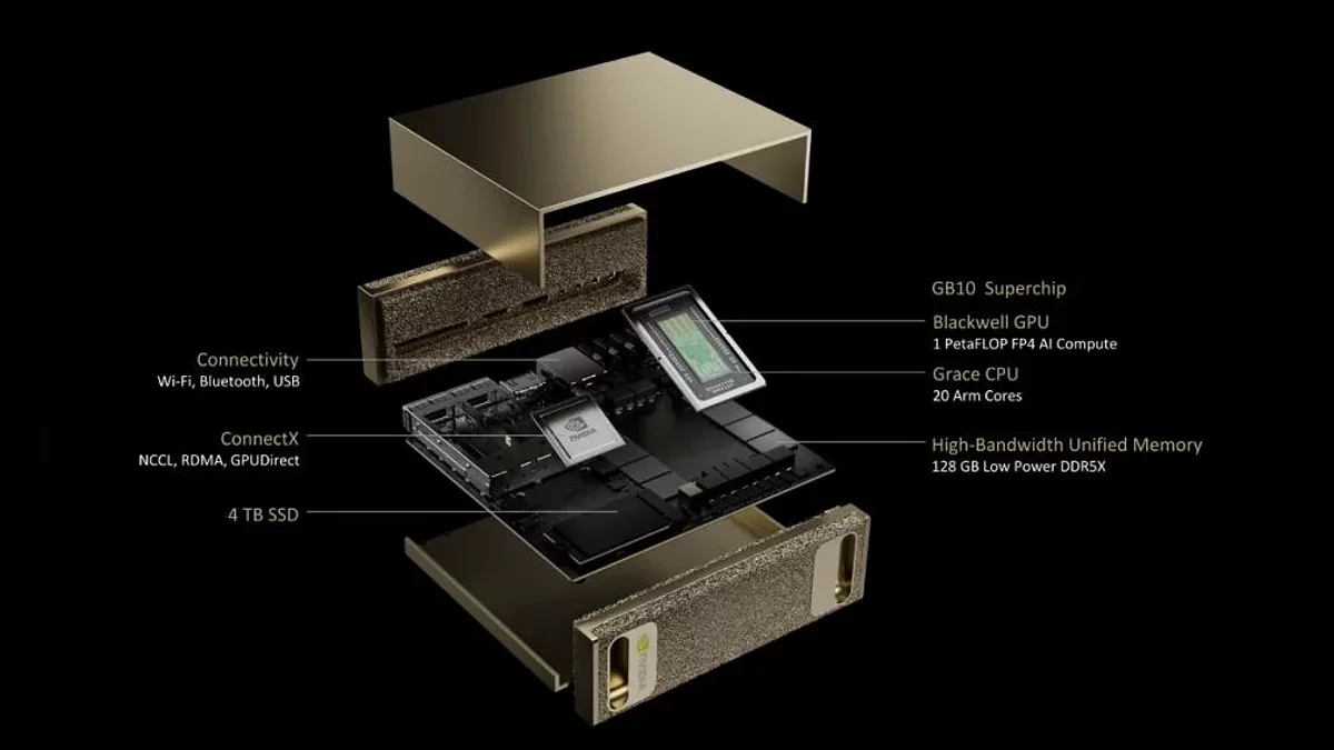 Мини-ПК оснащён чипом GB10 с 20 ядрами, состоящими из 10 ядер Arm Cortex-X925 и 10 ядер Cortex-A725. В сочетании с 128 Гб унифицированной памяти LPDDR5X и SSD на 4 Тб, он обеспечит вычислительную мощность на уровне 1 петафлопса. Это довольно мощное решение для локальной разработки и тестирования моделей ИИ.