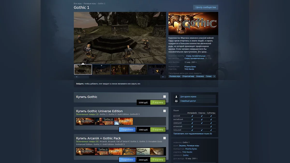 В российском Steam резко подорожала трилогия Gothic. Каждая часть стоит 1099 рублей