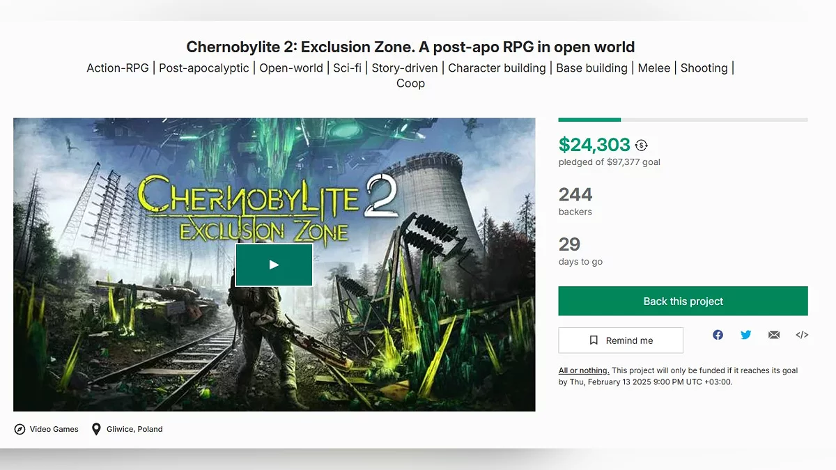 Польская студия The Farm 51 запустила кампанию по сбору средств на Kickstarter, которые пойдут на разработку Chernobylite 2: Exclusion Zone. Также был опубликован новый трейлер игры.
