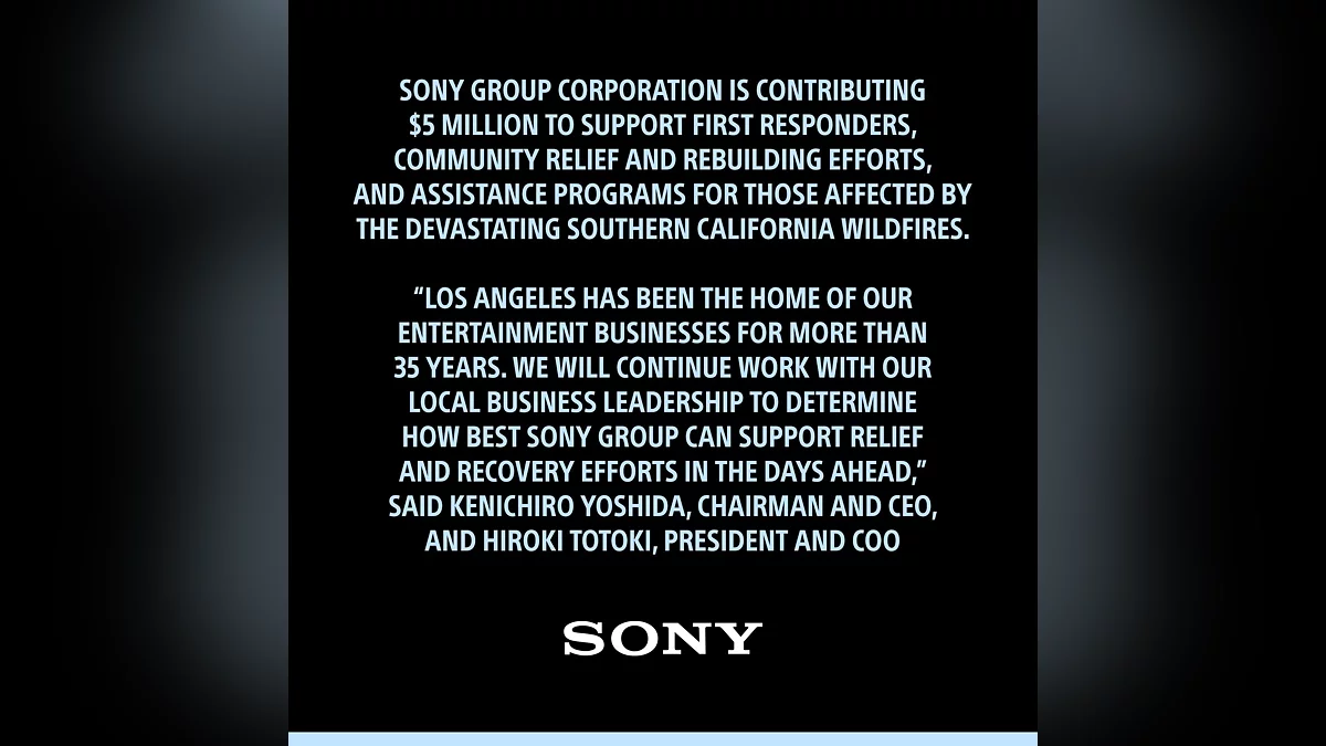 Компания Sony сообщила, что приняла решение пожертвовать $5 млн на помощь пострадавшим от лесных пожаров в Лос-Анджелесе, которые начались в этом месяце и продолжаются и по сей день.