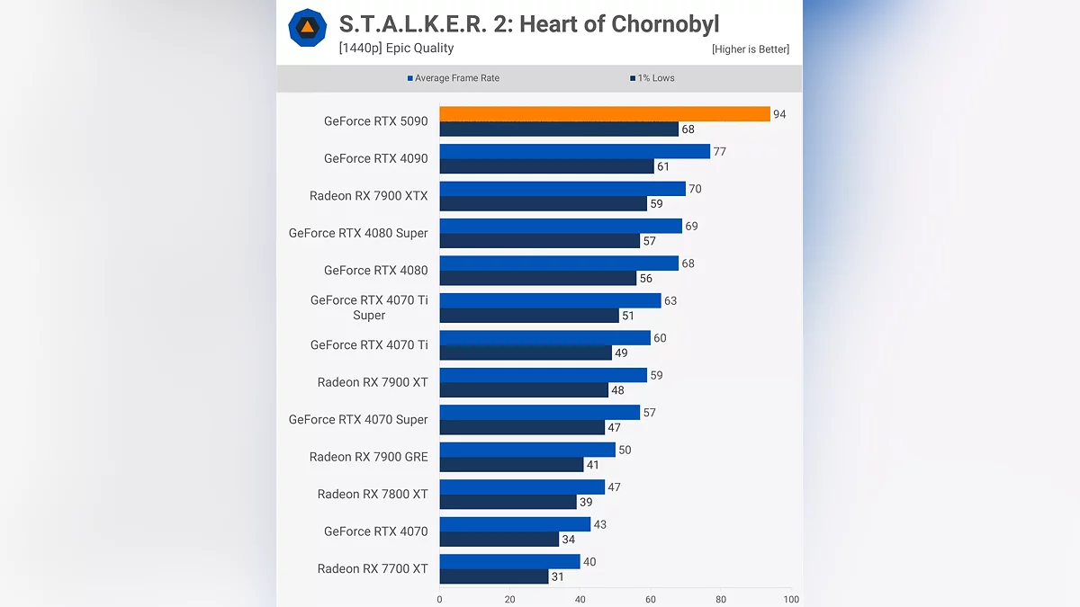 Портал TechSpot получил в свои руки новую флагманскую видеокарту RTX 5090 и протестировал на ней несколько проектов, включая S.T.A.L.K.E.R. 2 — одну из самых «тяжёлых» игр 2024 года.
