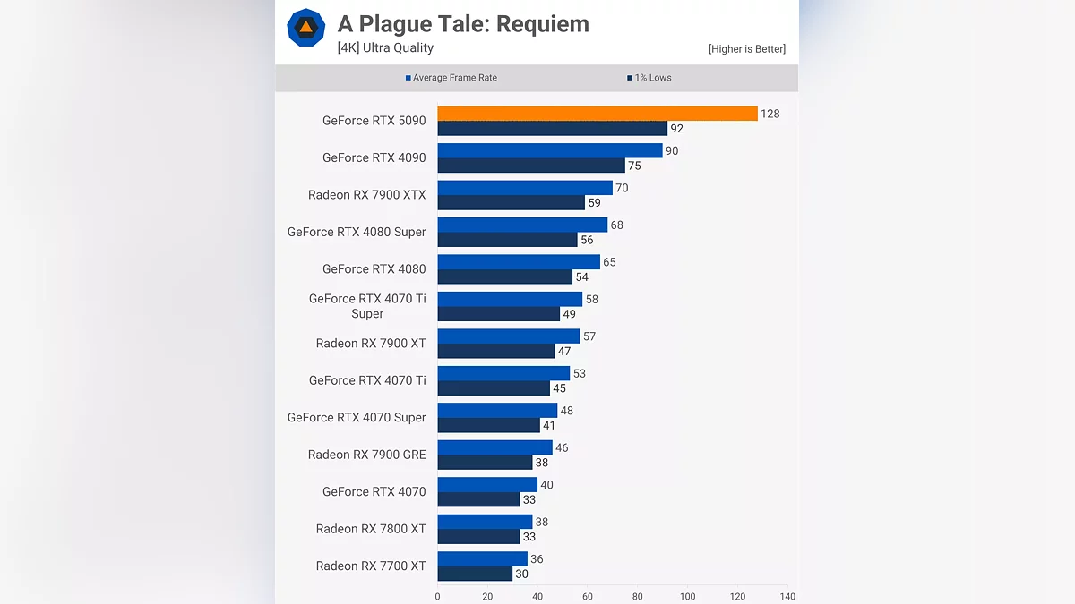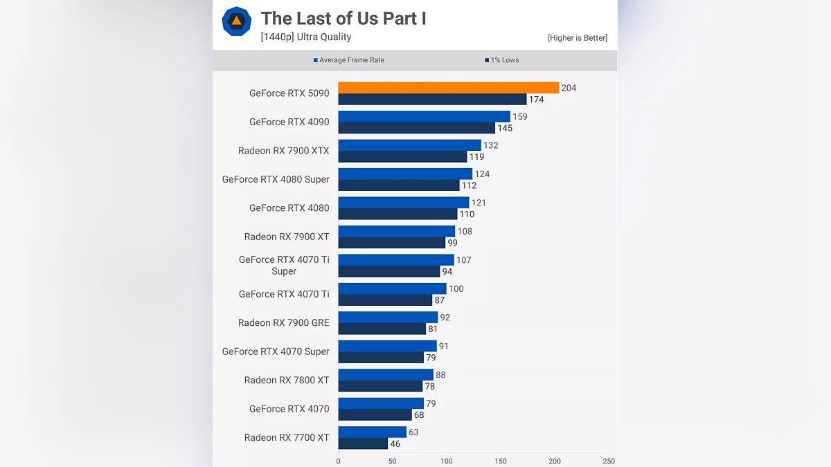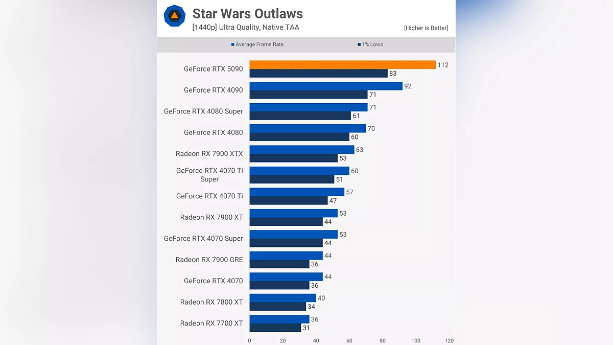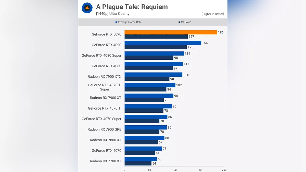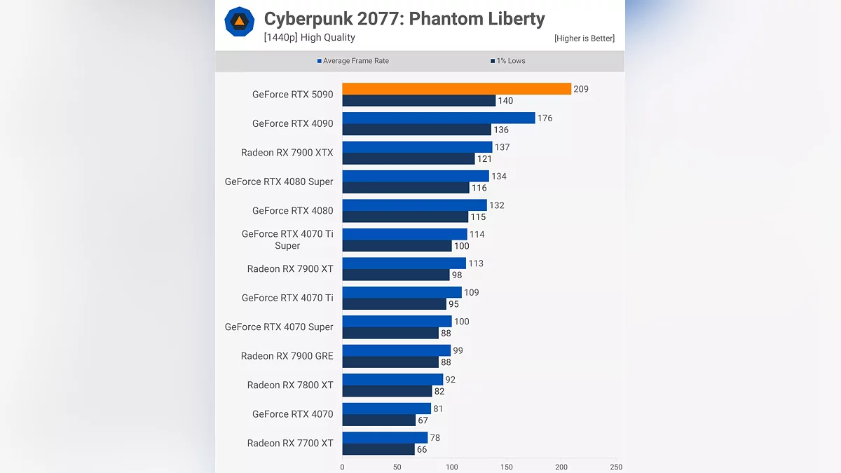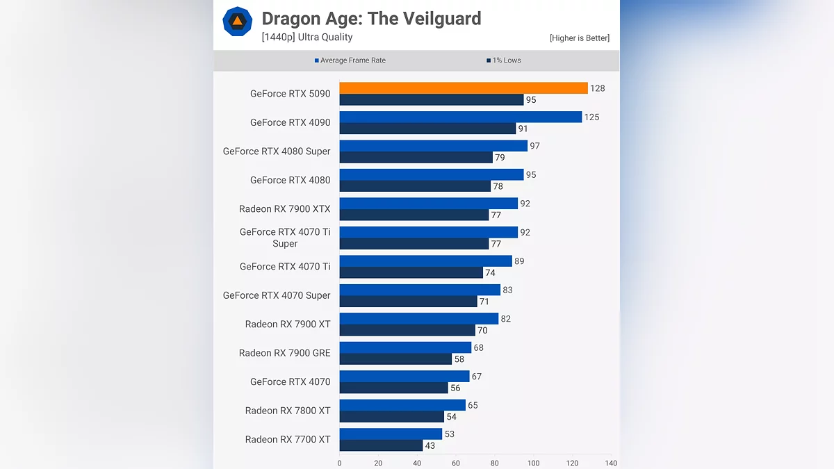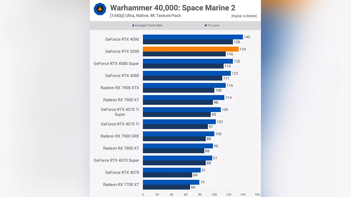 Результат тестирования сайт опубликовал на изображениях. В разрешении 1440p c «эпическими» настройками графики RTX 5090 выдала 94 FPS (среднее значение). Для сравнения, флагман прошлого поколения RTX 4090 выдал 77 FPS. В 4K-разрешении игра запустилась в 71 FPS на RTX 5090. RTX 4090 выдала 50 кадров в секунду. В тестировании использовался процессор AMD Ryzen 7 9800X3D.