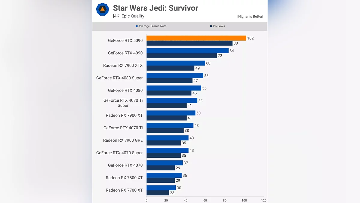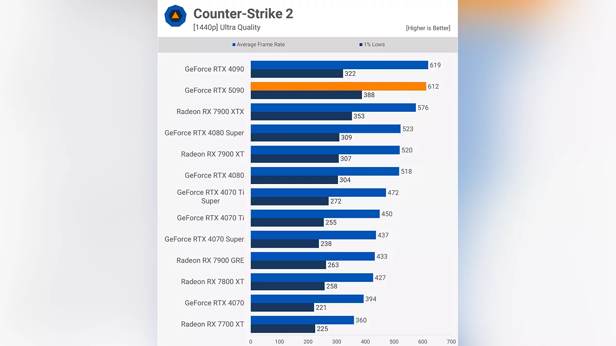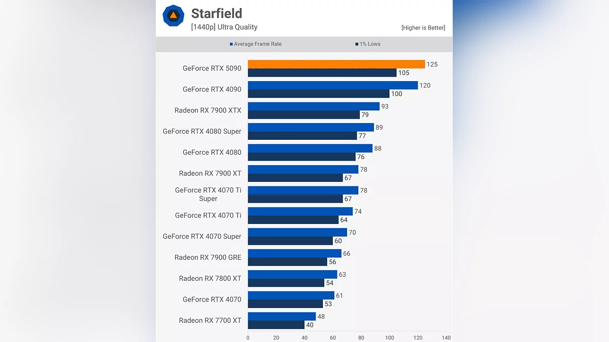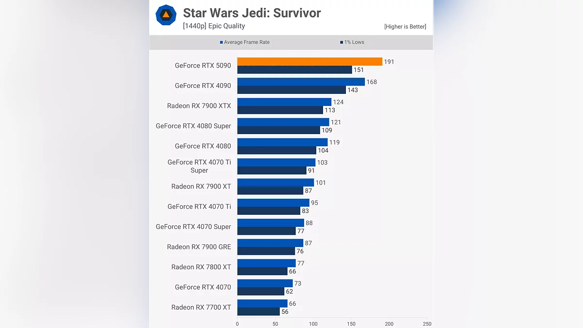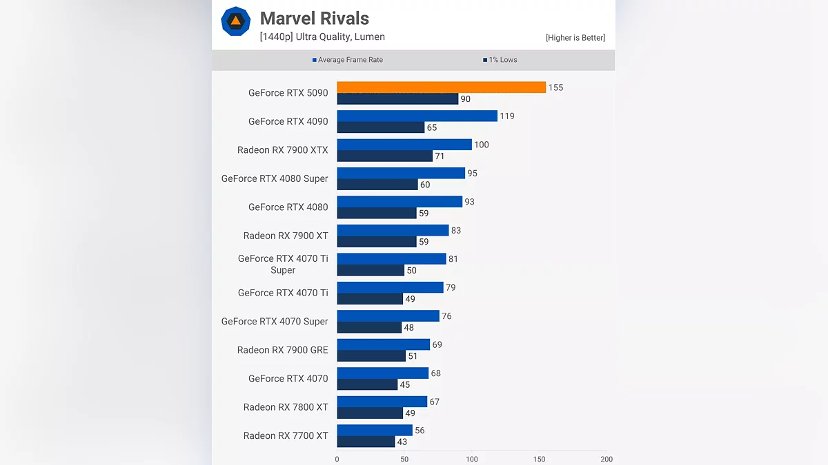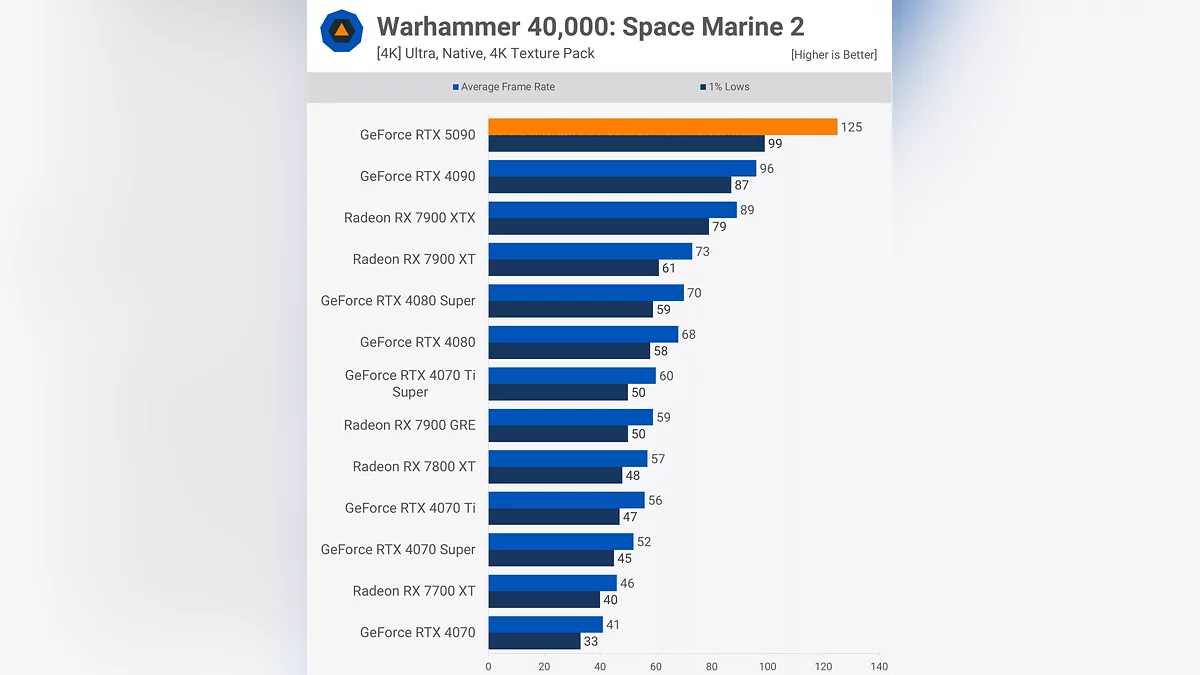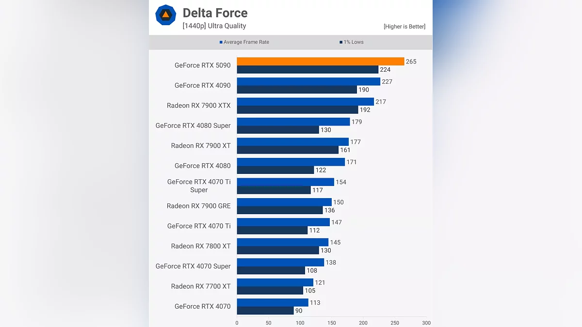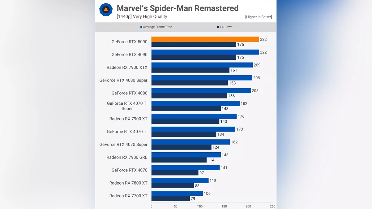 Результат тестирования сайт опубликовал на изображениях. В разрешении 1440p c «эпическими» настройками графики RTX 5090 выдала 94 FPS (среднее значение). Для сравнения, флагман прошлого поколения RTX 4090 выдал 77 FPS. В 4K-разрешении игра запустилась в 71 FPS на RTX 5090. RTX 4090 выдала 50 кадров в секунду. В тестировании использовался процессор AMD Ryzen 7 9800X3D.
