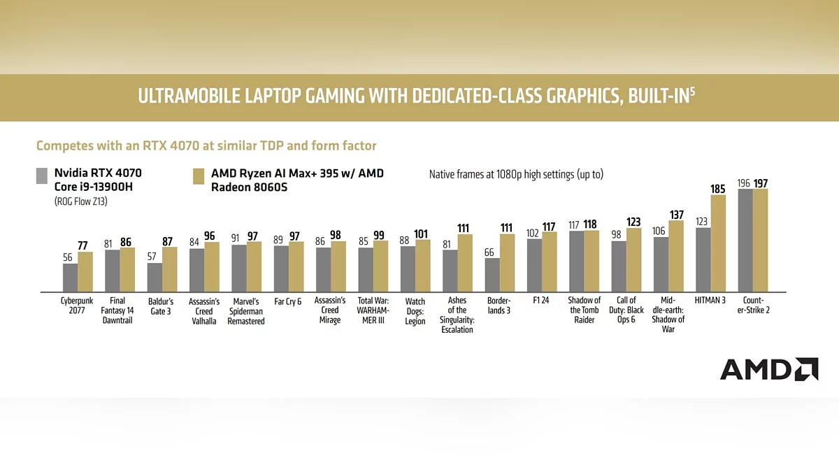 Наибольший отрыв наблюдался в таких тайтлах, как Borderlands 3 и Baldur's Gate 3. AMD подчеркнула, что её «встройка» превосходит соперника по производительности даже без использования технологий вроде апскейлинга. Появление Strix Halo может существенно изменить рынок ноутбуков, предлагая уникальное сочетание мощности и энергоэффективности. Однако подробности о доступности и стоимости остаются неизвестными.