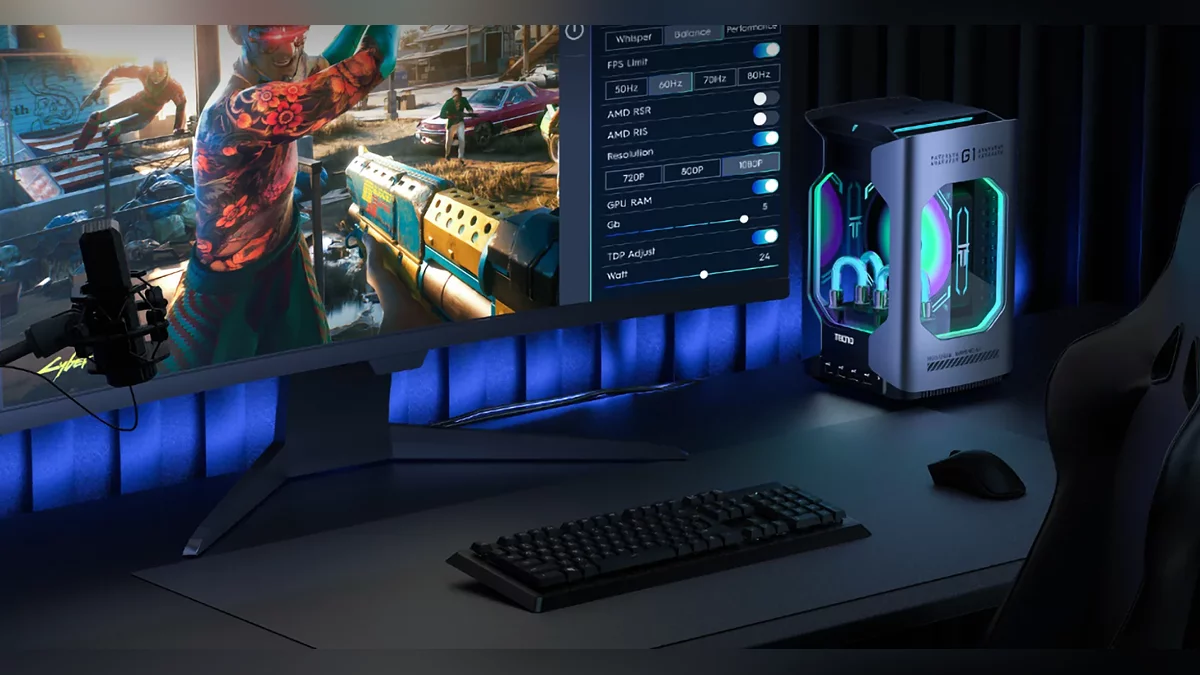 Mega Mini Gaming G1 имеет 15 портов для подключения внешней периферии, включая два Thunderbolt 4, OCuLink для подключения внешних GPU/накопителей и 2.5 GbE Ethernet. Устройство поддерживает Wi-Fi 6E и Bluetooth 5.2, а RGB-подсветка корпуса добавляет геймерской эстетики. В комплекте — компактный блок питания GaN мощностью 330 Вт.