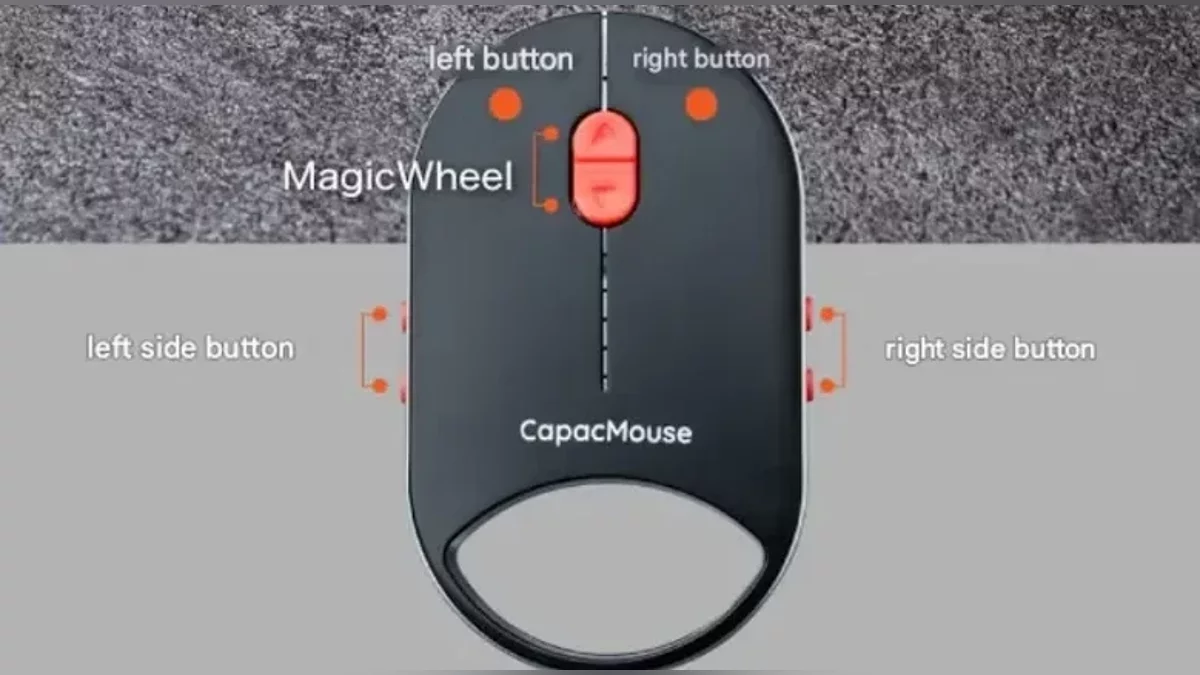 CapacMouse Pro весит всего 30 грамм и оснащена сенсорной панелью MagicWheel, реагирующей на силу нажатия: легкое касание замедляет прокрутку, а интенсивное — ускоряет. Вместо классического колеса здесь две многофункциональные кнопки, а по бокам расположены дополнительные клавиши. Левые отвечают за навигацию в браузере, правые — за автоматический двойной клик и быструю смену настроек.