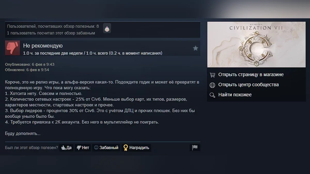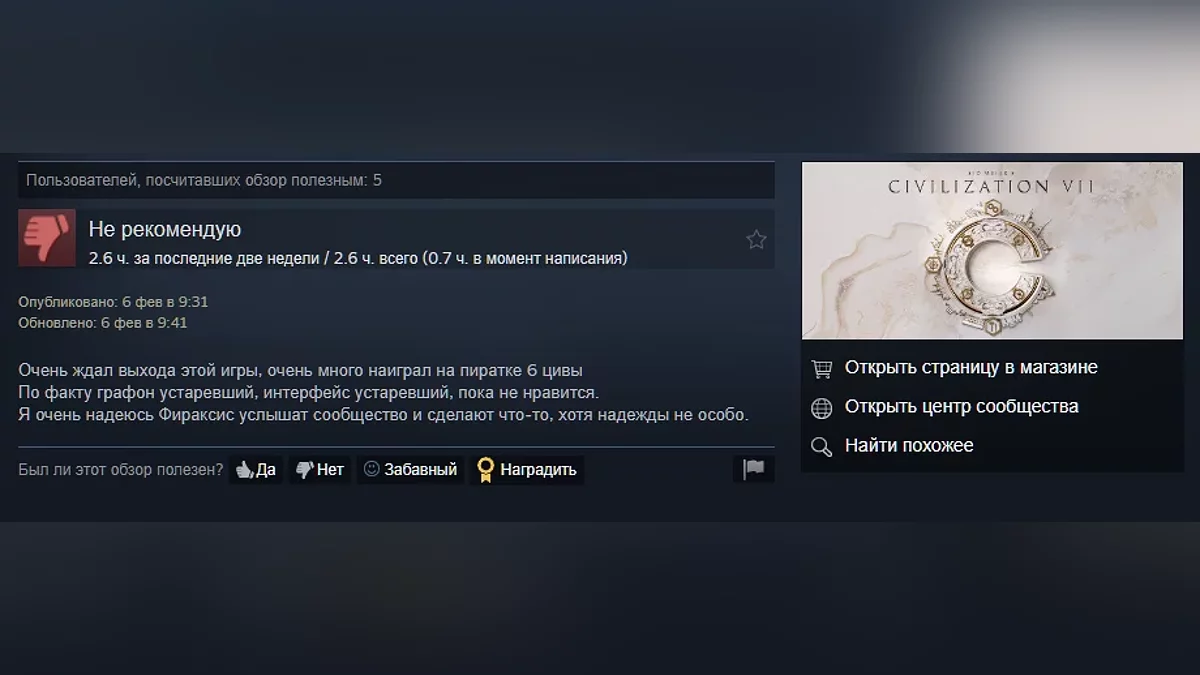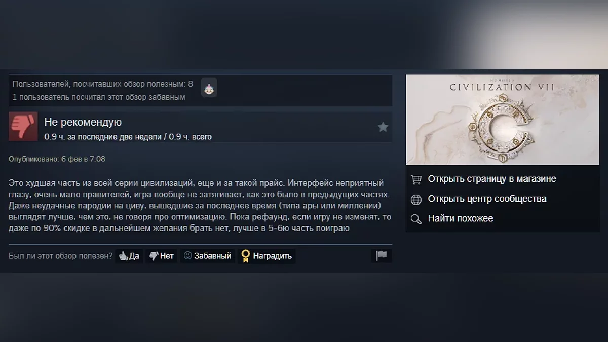 Пользователи Steam разгромили Civilization 7 — игра получила всего 39% положительных отзывов