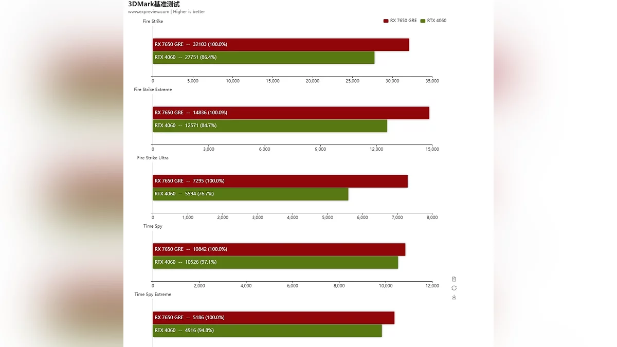 Компания AMD недавно расширила линейку RX 7600, представив модель RX 7650 GRE, предназначенную исключительно для китайского рынка. Устройство заняло нишу между базовой RX 7600 и более мощной RX 7600 XT, сделав ставку на баланс цены и производительности. При схожих с младшей сестрой характеристиках — 2048 ядер, 8 ГБ памяти GDDR6 и 128-битная шина — новинка получила увеличенную до 2695 МГц частоту и TDP 170 Вт, что на 5 Вт выше, чем у RX 7600. В обзоре Expreview карта Sapphire RX 7650 GRE Black Diamond Edition (с заводским разгоном до 2810 МГц, но тестируемая в стандартном режиме) сравнивалась с RTX 4060 в 1080p. Результаты оказались неоднозначными:
