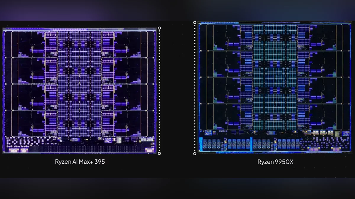 Ryzen AI Max+ 395 — это первый APU с чиплетным дизайном, объединяющий до 16 процессорных ядер Zen 5 и интегрированную графику Radeon 8060S с 40 вычислительными блоками. Такой подход позволяет устройству конкурировать с дискретными видеокартами, такими как NVIDIA GeForce RTX 4050 и 4060, а в некоторых сценариях даже приближаться к производительности RTX 4070 для ноутбуков. Особого внимания заслуживает технология TSV (Through-Silicon Via), используемая в кристаллах APU. Как подтвердил Тони Ю (Tony Yu), главный менеджер китайского подразделения ASUS, это открывает путь для создания модификаций с 3D V-Cache, что может ещё больше повысить производительность в будущем.
