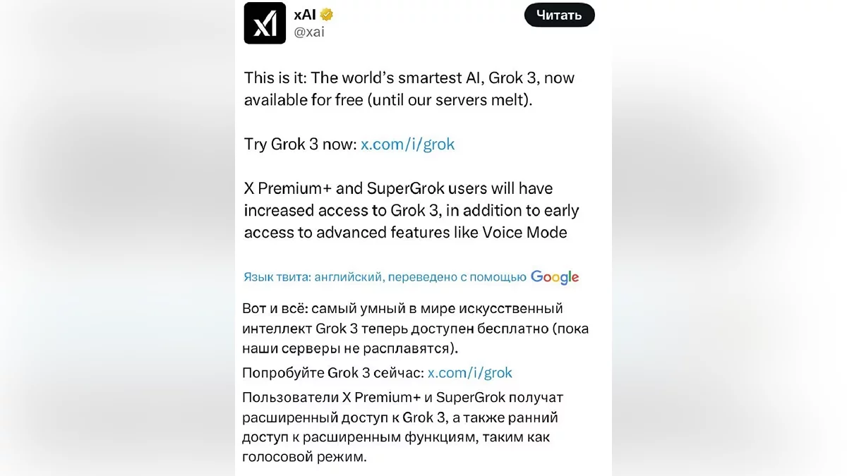 Несмотря на заявленную открытость, жители России и ряда других стран столкнутся с барьерами: для доступа к Grok 3 требуется аккаунт в соцсети X (бывший Twitter), которая заблокирована на территории РФ. При этом нейросеть понимает русский язык и готова отвечать на запросы, что создает парадокс: технология доступна, но юридически недосягаема. Выдержит ли инфраструктура xAI наплыв пользователей, или серверы действительно «расплавятся» под давлением миллионов запросов? Пока ясно одно — гонка ИИ вступила в фазу, где доступность и интеллект идут рука об руку.
