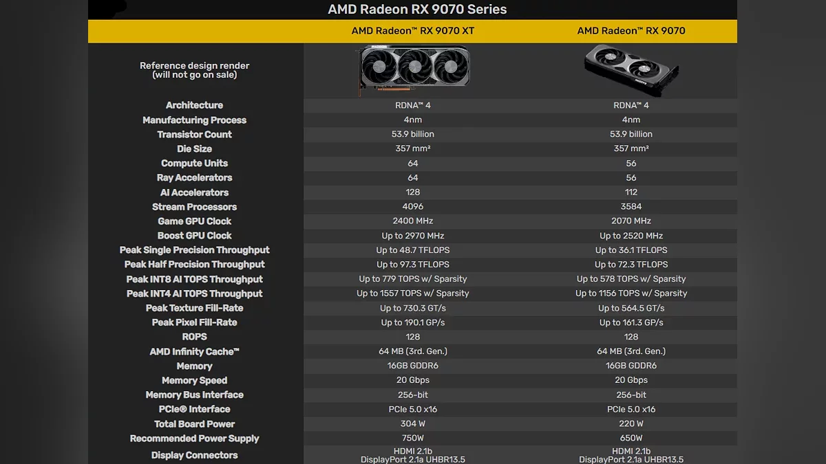 Полные характеристики RX 9070 XT и RX 9070 утекли в сеть за день до презентации