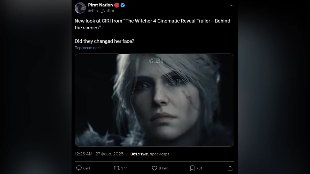 Вчера вечером CD Projekt RED опубликовала десятиминутный ролик о создании первого трейлера The Witcher 4. Больше всего зрителей заинтересовали кадры с Цири, которая заметно похорошела с прошлого появления.