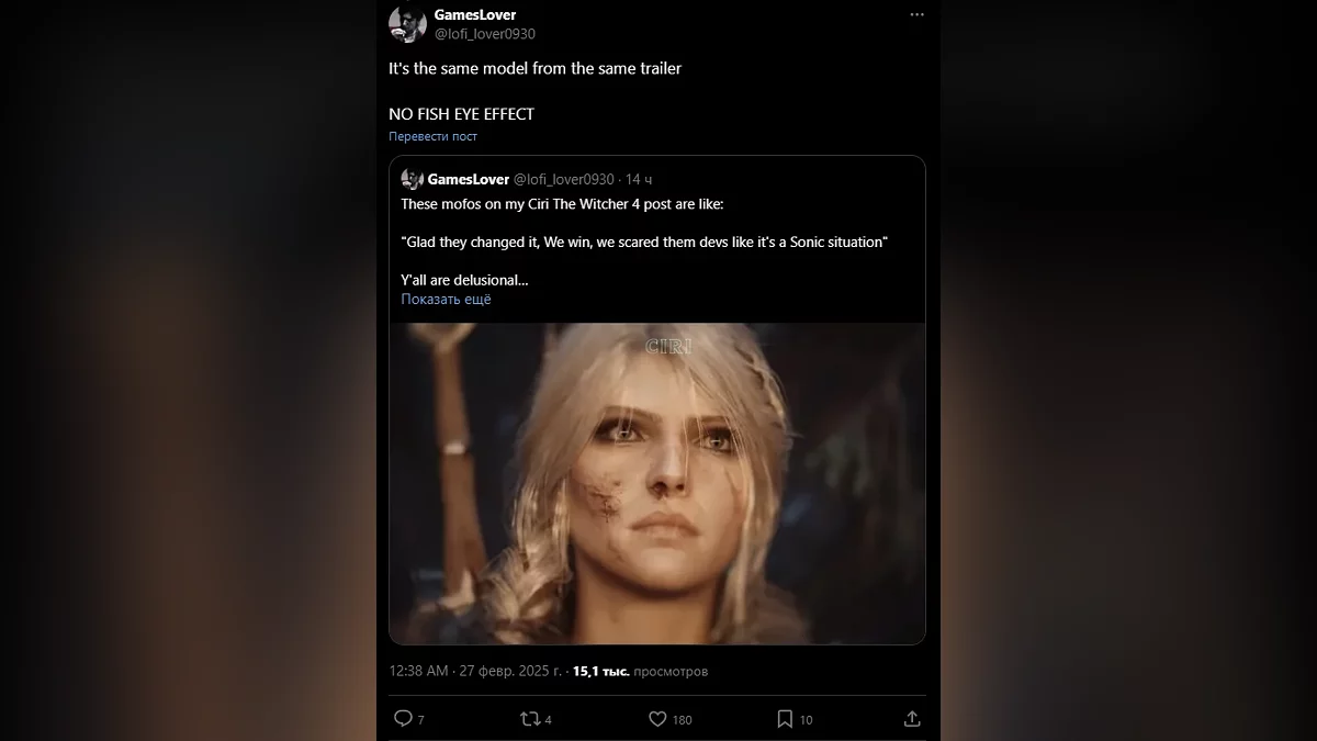 Игроки остались довольны «новой» внешностью Цири, а вот мнения касательно модели разделились. Одни считают, что авторы не меняли лицо девушки. Другие уверены, что CDPR «прогнулась» и подкорректировала внешность Цири.