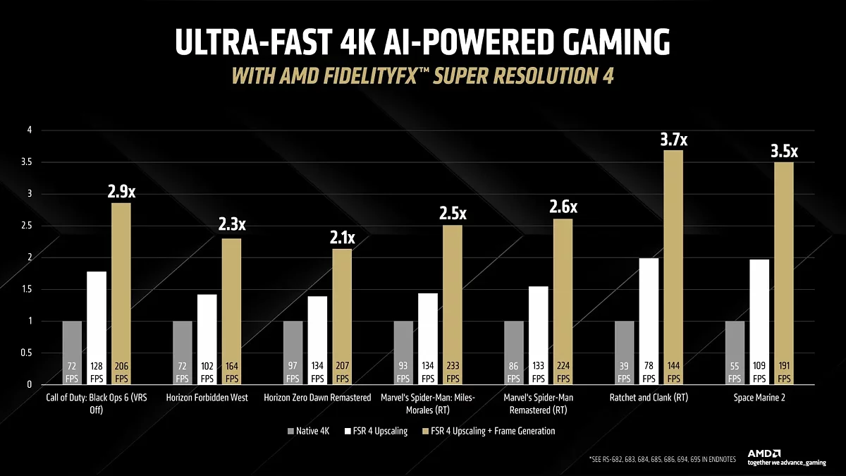 На запуске FSR 4 будет доступен в 30+ проектах благодаря обновляемому API, унаследованному от FSR 3.1. К 2025 году список расширится до 75+ тайтлов. С FSR 4 AMD не просто догоняет NVIDIA, а задает новый стандарт ИИ-рендеринга. Однако успех технологии зависит от скорости внедрения технологии в игры. Если разработчики возьмут технологию на вооружение, геймеры получат мощную альтернативу, где качество изображения больше не будет жертвой высокой частоты кадров.