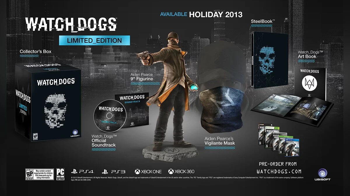 Watch Dogs разрабатывается для PlayStation 3, Xbox 360, PC, PlayStation 4 и Xbox One. Судя по надписям на изображении выше, вы сможете приобрести ограниченное издание и для консолей следующего поколения.