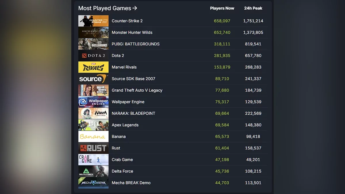 Судя по всему, за рекорд стоит благодарить фестиваль «Играм быть», где участвовали сотни демоверсий, и релиз Monster Hunter Wilds. Новая игра Capcom практически сразу получила первый миллион игроков, а на выходных пиковый онлайн вырос до 1,3 миллиона.