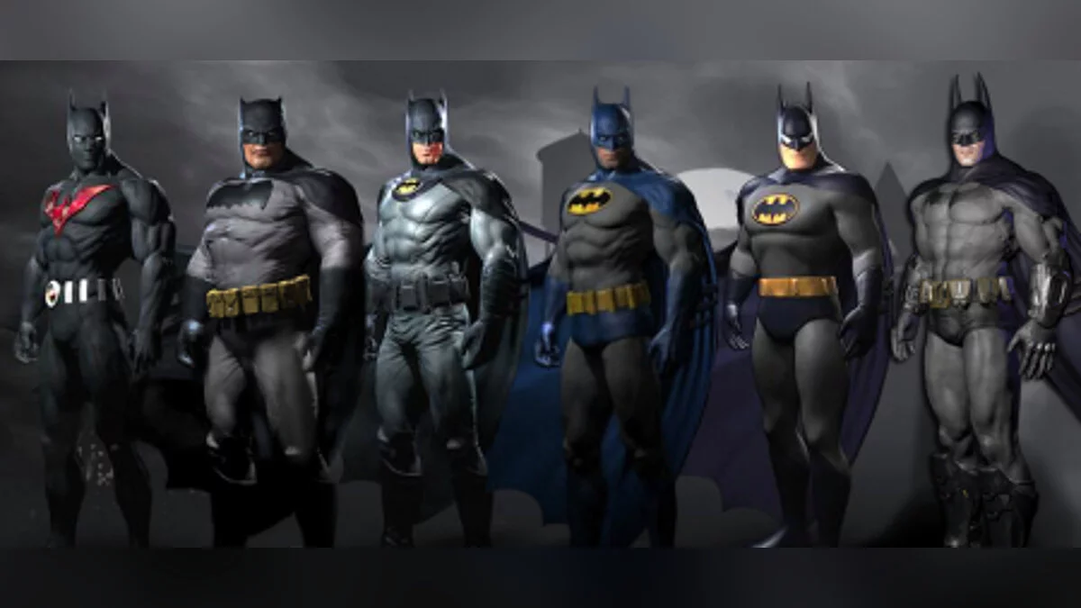 Одним из самых интересных скинов является внешний вид Бэтмена в духе комиксов The Dark Knight Returns (на картинке ниже, второй слева), где супергерой представлен постаревшим грузным дядькой. Этот дядька появится у всех кто оформить предзаказ на коллекционное издание игры.