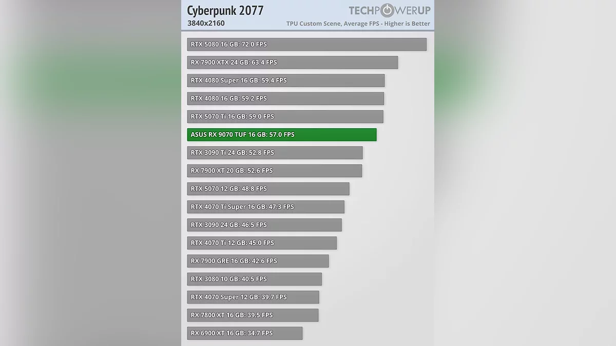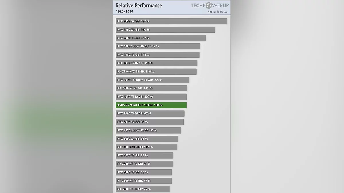 Новинки основаны на чипах Navi 48 XTX (RX 9070 XT) и Navi 48 XT (RX 9070), демонстрирующих впечатляющую эффективность. Например, младшая модель с 56 вычислительными блоками не только обходит предыдущий флагман RX 7900 GRE на 13% в 1080p, но и вплотную приближается к RTX 4070 Ti. Старшая же RX 9070 XT, несмотря на 64 CU, сократила отставание от топовой RX 7900 XTX до 2-4% в 4K, что говорит о существенной оптимизации архитектуры.