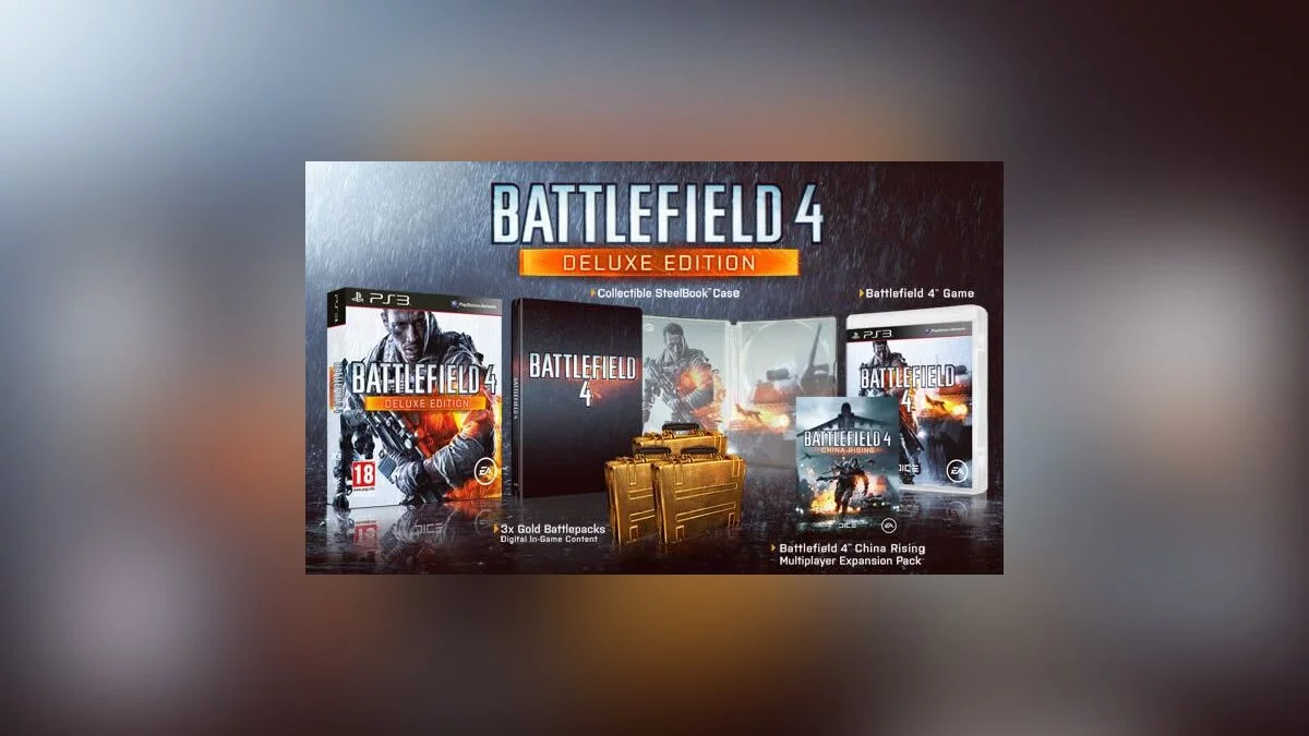 Продажей данного издания будет заниматься британский магазин GAME, но это лишь вопрос времени, когда Deluxe-издание анонсируют для других стран. В состав Battlefield 4 Deluxe Edition входят копия игры в стилбуке, первое дополнение China Rising, а также 3 золотых баттлпака (Battlepack), которые позволят вам открыть различные предметы в многопользовательской игре.