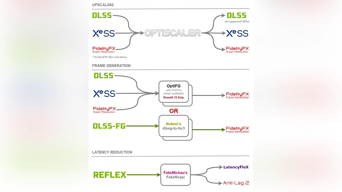 OptiScaler действует как «переходник» между технологиями: он подменяет файлы DLSS или XeSS на FSR 4, что автоматически добавляет поддержку последней. Утилита также экспериментально внедряет генерацию кадров и функцию Anti-Lag через NVIDIA Reflex, расширяя её возможности за рамки простого апскейлинга. Например, в Cyberpunk 2077, где разработчики отказались от обновления FSR до версии 3.1, моддеры уже демонстрируют работу FSR 4 с улучшенной детализацией и стабильностью изображения.