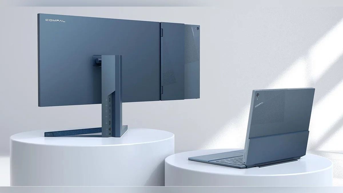 Компания Compal представила футуристический концепт Hybrid AIO, устройство бросает вызов традиционным представлениям о персональных компьютерах, объединяя в одном девайсе функционал ноутбука, планшета и моноблока с двумя экранами. Но главная «фишка» проекта — не просто универсальность, а революционный подход к модульности.