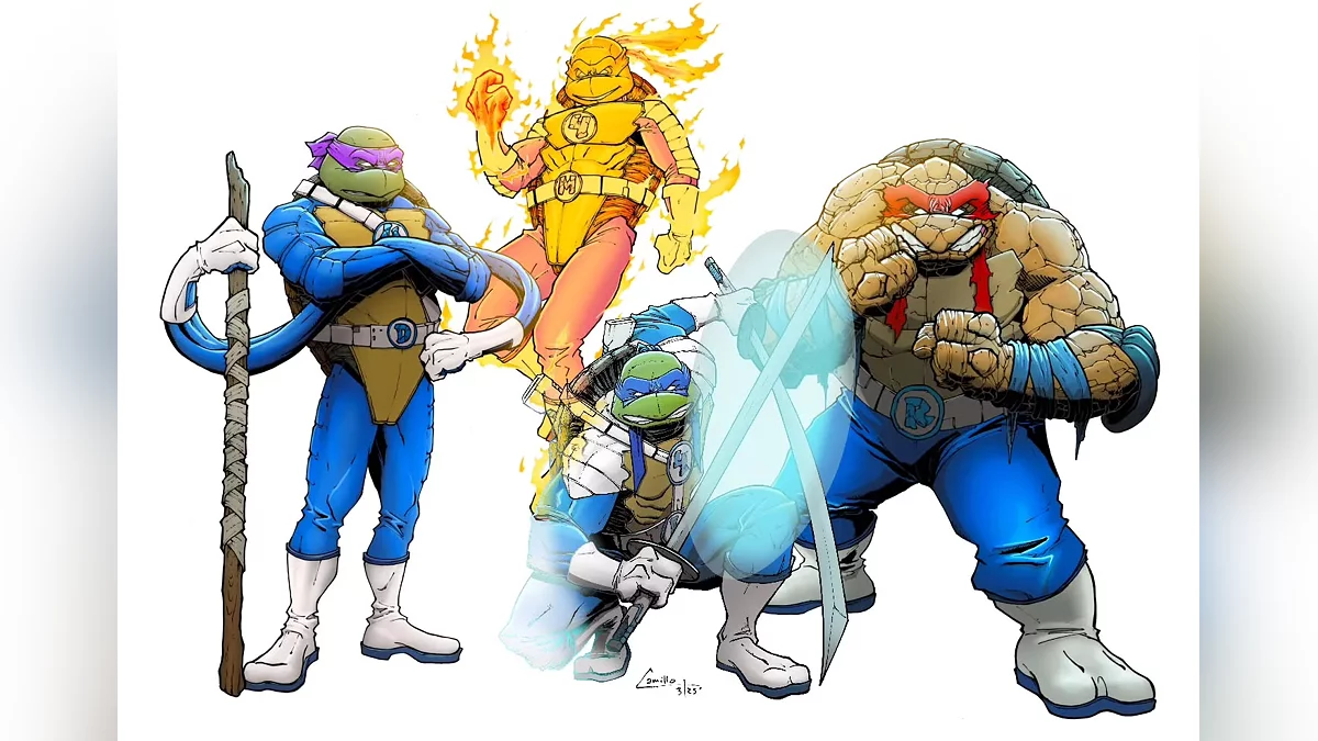 Художник опубликовал в соцсетях несколько изображений, где показал Черепашек-ниндзя в образе членов Фантастической четвёрки. Микеланджело стал Человеком-факелом, Леонардо — Невидимым джентльменом, Рафаэль — Существом, а Донателло — Мистером Фантастиком.