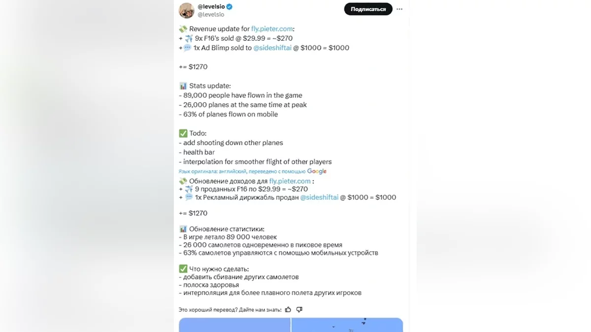 28 февраля 2025 года Левелс, никогда ранее не касавшийся геймдева, запустил fly.pieter.com — браузерный 3D-симулятор с воздушными боями. Используя связку Claude Sonnet 3.7 и ИИ-редактора Cursor, он буквально «разговаривал» с алгоритмом: «Создай город с небоскребами, где игроки управляют самолетами». Каждую техническую задачу предприниматель формулировал как диалог, минуя традиционное программирование.