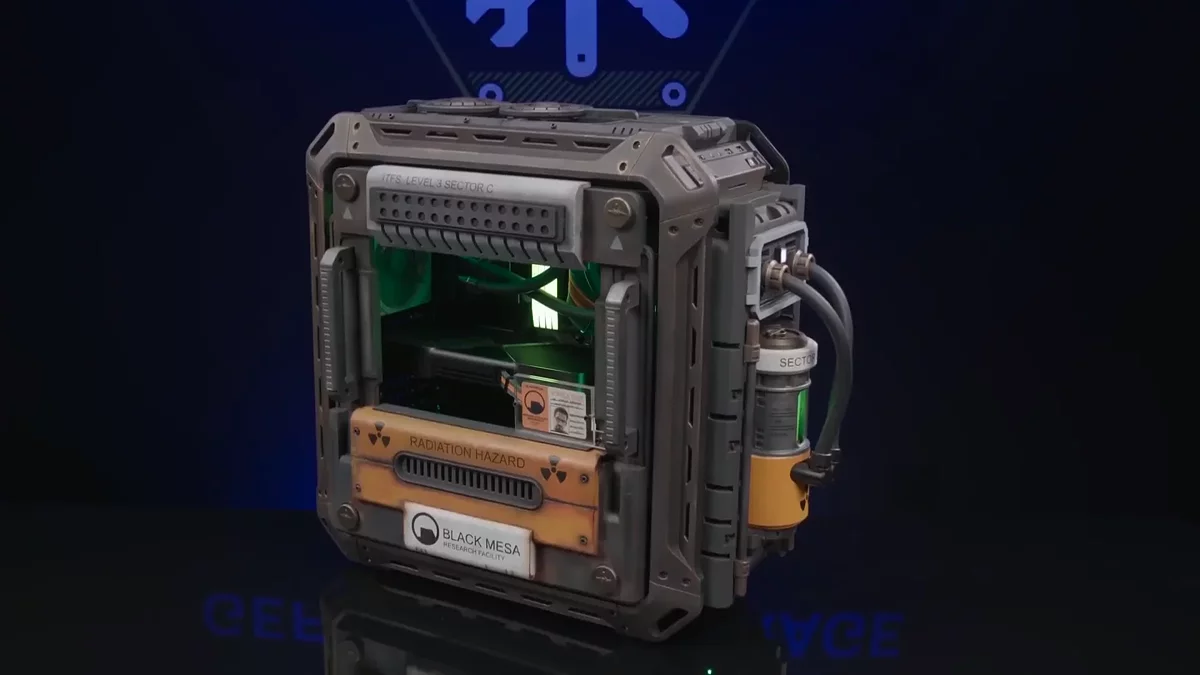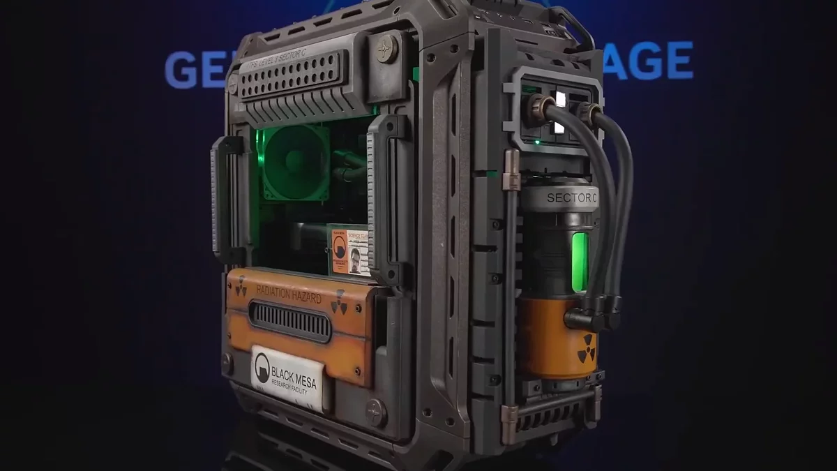 Если оригинальный PC 2009 года отражал эстетику постапокалиптического мира Гордона Фримена, то Black Mesa 2.0 воплотил визуальную революцию RTX-ремейка. Дизайн корпуса, напоминающий лабораторное оборудование из вселенной Black Mesa, дополнен «состаренными» панелями с эффектом потертости — их создавали при помощи лазерной гравировки и 3D-печати. Особое внимание уделено детализации: элементы вентиляции стилизованы под промышленные воздуховоды, а подсветка имитирует холодное свечение реактора.
