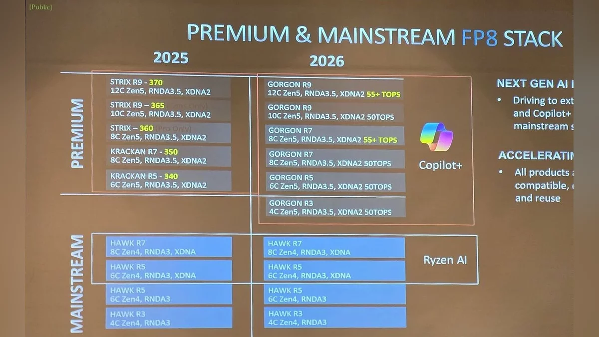 Компания AMD раскрыла планы по обновлению линейки мобильных процессоров, которые обещают стать новым этапом в развитии искусственного интеллекта на портативных устройствах. Согласно утечкам, анонсированы APU Gorgon Point с увеличенной частотой и нейропроцессором XDNA 2, способным выполнять свыше 55 триллионов операций в секунду (TOPS).