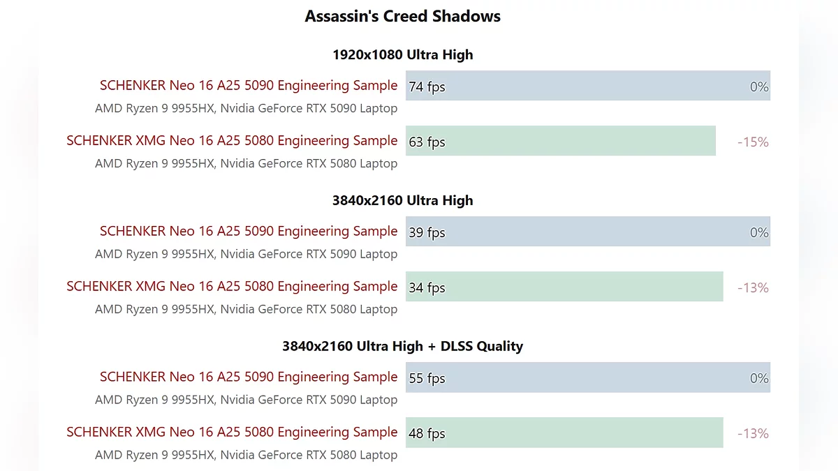 Тестирование проводилось на идентичных ноутбуках Schenker Neo 16 с процессором AMD Ryzen 9 9955HX. Результаты показали, что даже в ресурсоёмких условиях RTX 5080 демонстрирует стабильную работу, почти не уступая старшей версии. Основной аргумент в пользу RTX 5080 — её стоимость. Для многих пользователей переплата за 10–15% прироста может оказаться неоправданной, особенно если задачи не требуют максимальных настроек в 4K. Ситуация напоминает соотношение между RTX 4080 и RTX 4090 в предыдущей линейке, где младшая модель также предлагала лучшее соотношение цены и производительности.