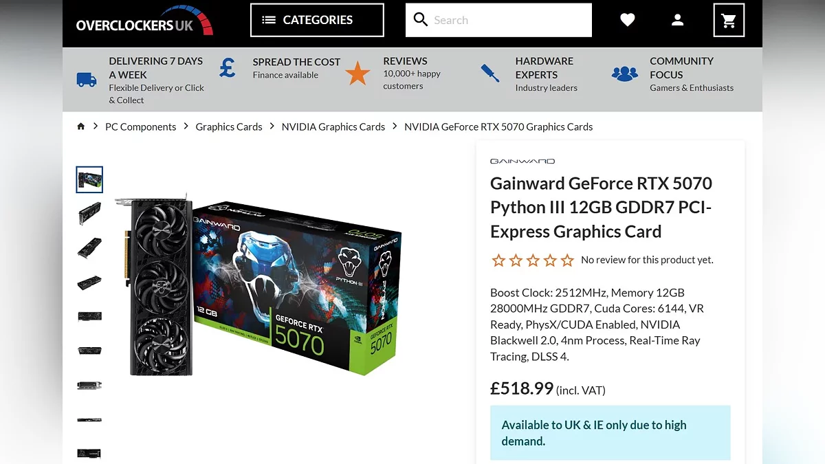 На рынке Великобритании и Германии снижается стоимость видеокарт NVIDIA GeForce RTX 5070. Как отмечают отраслевые наблюдатели, британский продавец OverclockersUK одним из первых предложил модели новинки дешевле стартовой цены, установленной производителем.
