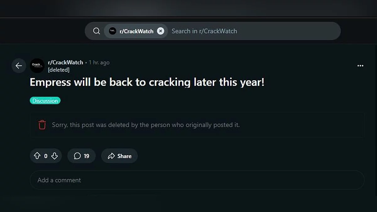 Известная в хакерских кругах Empress анонсировала своё возвращение к взлому видеоигр. В своём заявлении, опубликованном на специализированном форуме, она сообщила о намерении возобновить деятельность после длительного перерыва.
