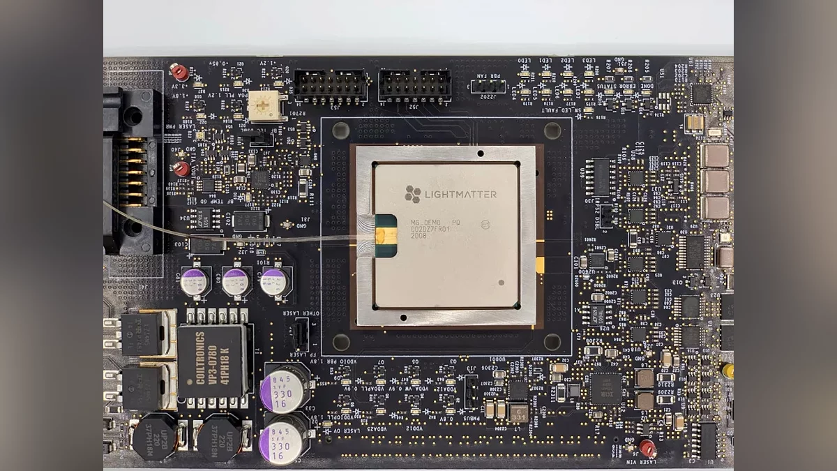 Американская компания Lightmatter анонсировала экспериментальный процессор, который использует световые волны для выполнения сложных вычислений в сфере искусственного интеллекта. Устройство, описанное в журнале Nature, объединяет шесть чипов в единый 3D-модуль, где фотонные компоненты взаимодействуют с электронными схемами, что позволяет обрабатывать данные с высокой скоростью при минимальных энергозатратах.