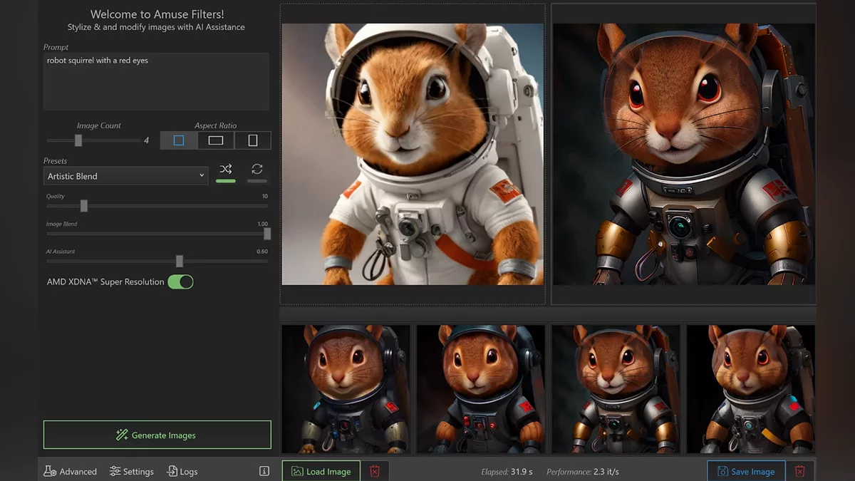 Amuse 3.0 позволяет создавать статичные изображения в качестве, пригодном для печати, а также видео длиной до 6 секунд в низком разрешении. Последнее может быть полезно для быстрого прототипирования идей или создания раскадровок. Дополнительно платформа включает инструменты для применения ИИ-фильтров к видеоконтенту.