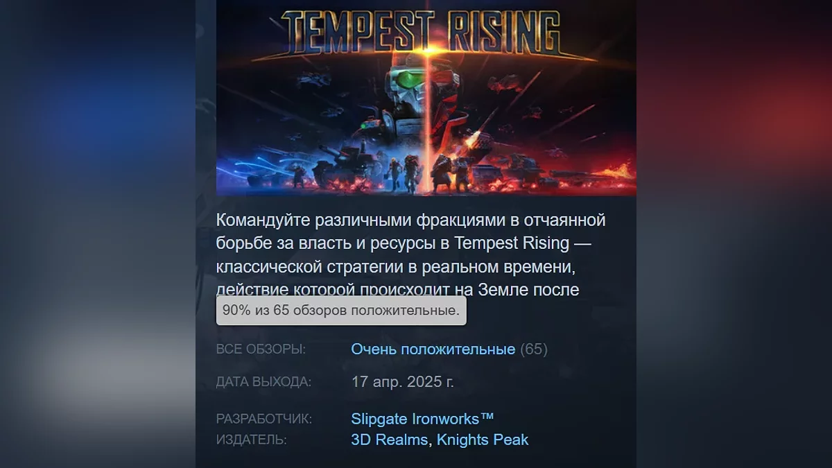 Стоит упомянуть, что Tempest Rising попала в ТОП-10 самых ожидаемых PC-игр апреля в Steam.