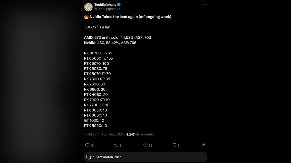 Рынок продолжает демонстрировать динамику, где даже незначительные изменения в ассортименте или ценообразовании могут быстро смещать баланс в пользу одного из брендов. Пока NVIDIA удаётся удерживать инициативу, но итоги следующих недель покажут, сохранится ли эта тенденция.
