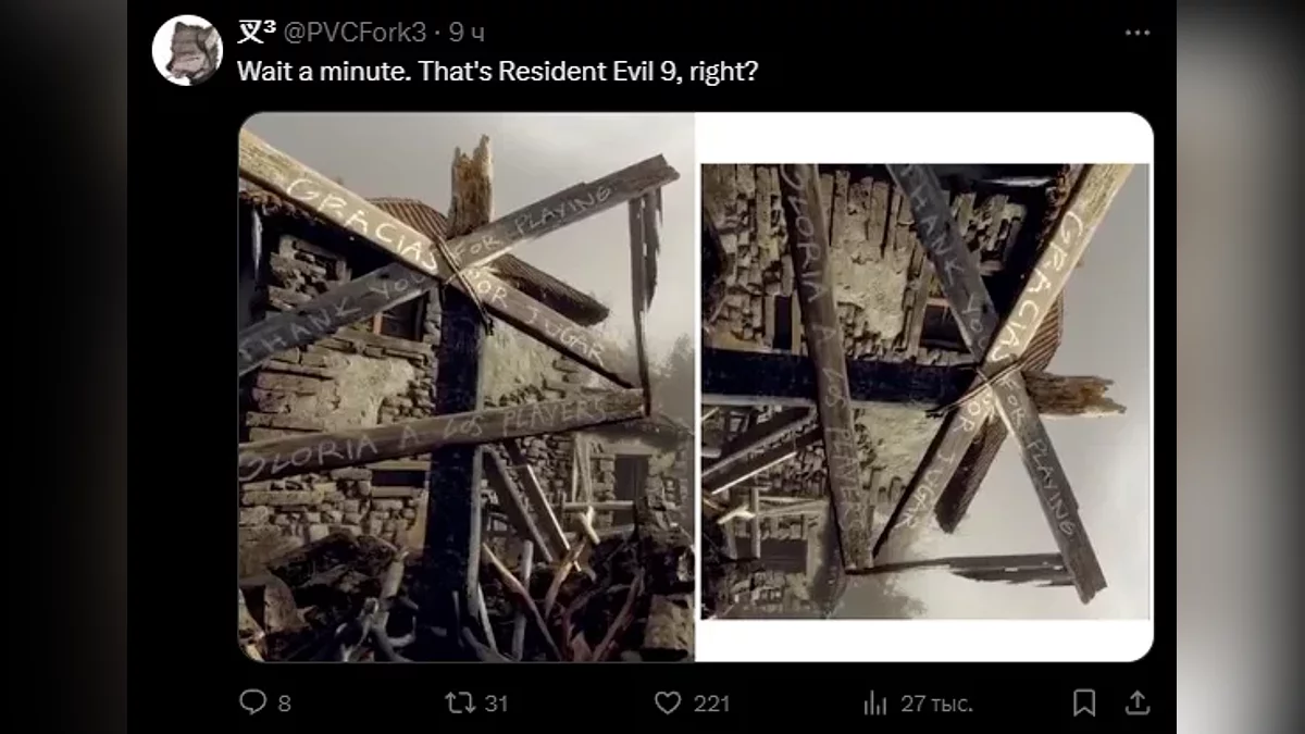 Неясно, намеренно ли в Capcom сделали перекладину такой формы для напоминания о будущей игре, или фанаты просто додумали за разработчиков. В любом случае, о создании Resident Evil 9 официально сообщили ещё в прошлом году.