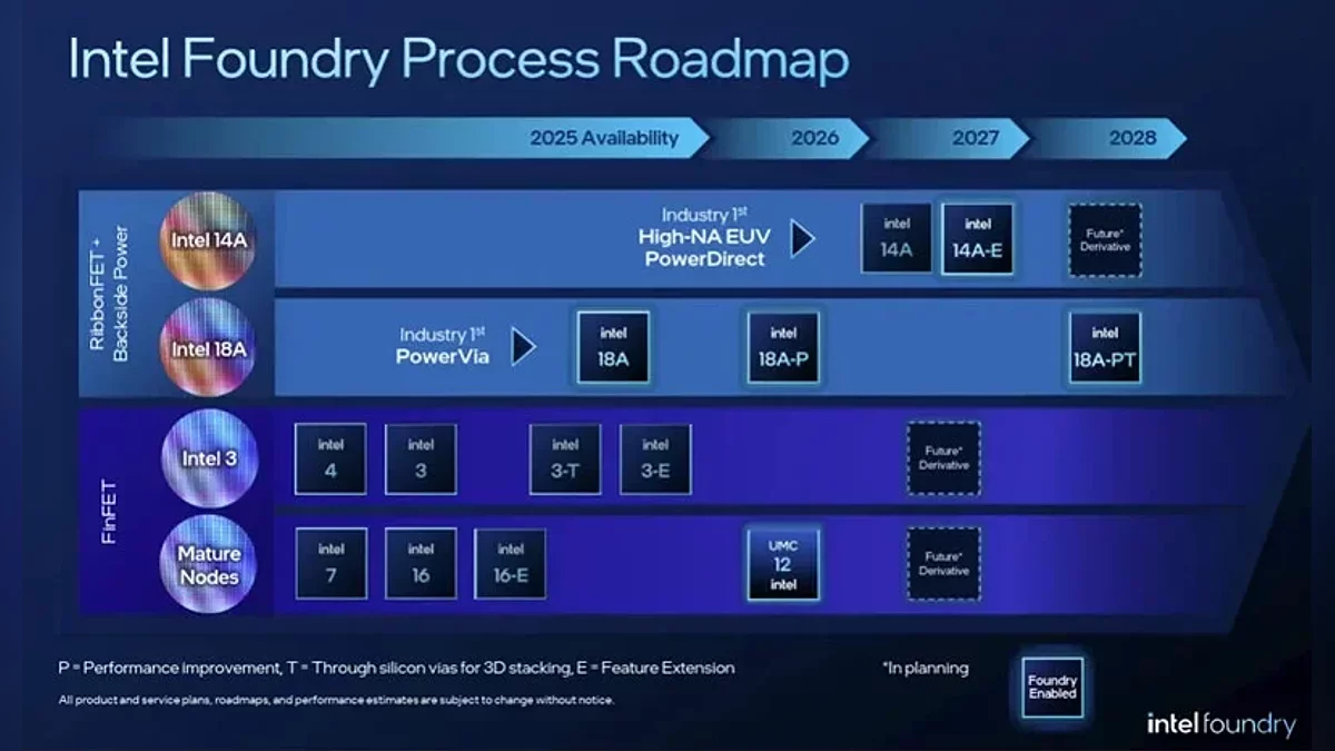 На конференции Intel Foundry Direct 2025, прошедшей в Сан-Хосе, компания Intel представила ряд новшеств, касающихся её производства чипов. Основное внимание было уделено новым техпроцессам и методам упаковки микросхем, в числе которых — 14A, 18A-P и 18A-PT.