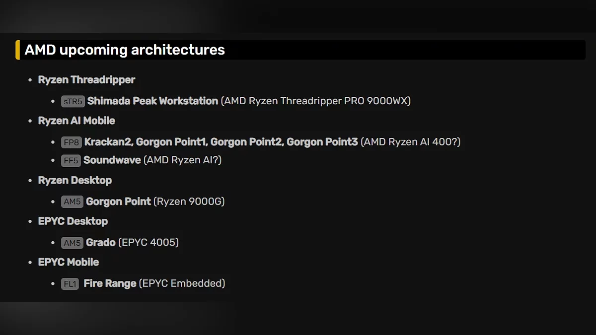 В сети появились данные о планах AMD представить несколько новых линеек процессоров. Инсайдеры InstLatX64 и Olrak29 сообщают, что компания сосредоточена на развитии платформы AM5, а также готовит сюрпризы для мобильного рынка. Для платформы AM5 ожидаются гибридные APU Ryzen 9000G (кодовое имя Gorgon Point) с ядрами Zen 5 и Zen 5c в соотношении 4+8, а также встроенной графикой Radeon 890M на архитектуре RDNA 3.5. Эти процессоры, позиционируемые как решение для компактных систем, могут появиться уже в конце 2025 года.