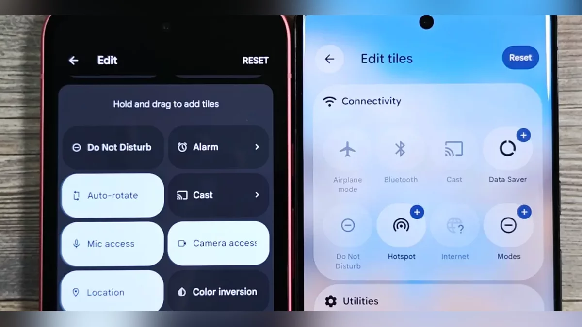 Панель быстрых настроек и уведомлений получила полупрозрачный фон с эффектом размытия — это касается как светлой, так и тёмной темы. Также здесь появились новые переключатели для Wi-Fi и Bluetooth, а ярлыки можно менять местами одним касанием. В меню многозадачности и списке приложений Pixel Launcher фон теперь тоже размывается, что визуально отделяет интерфейс от обоев. На экране ввода PIN-кода цифры стали крупнее, а точки-индикаторы адаптируются под системную тему.