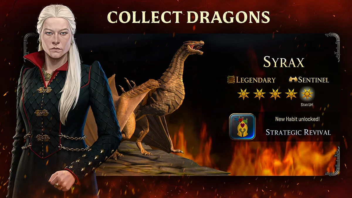 Game of Thrones: Dragonfire — условно-бесплатная военная стратегия с сюжетной кампанией и кинематографичными катсценами, события которой разворачиваются за 172 года до рождения принцессы Дейенерис Таргариен. Игроки в роли наездника драконов должны коллекционировать и тренировать крылатых существ — Сиракса, Каракса, Морского Дыма и не только. Проект требует постоянного подключения к интернету. Дата глобального релиза пока неизвестна.