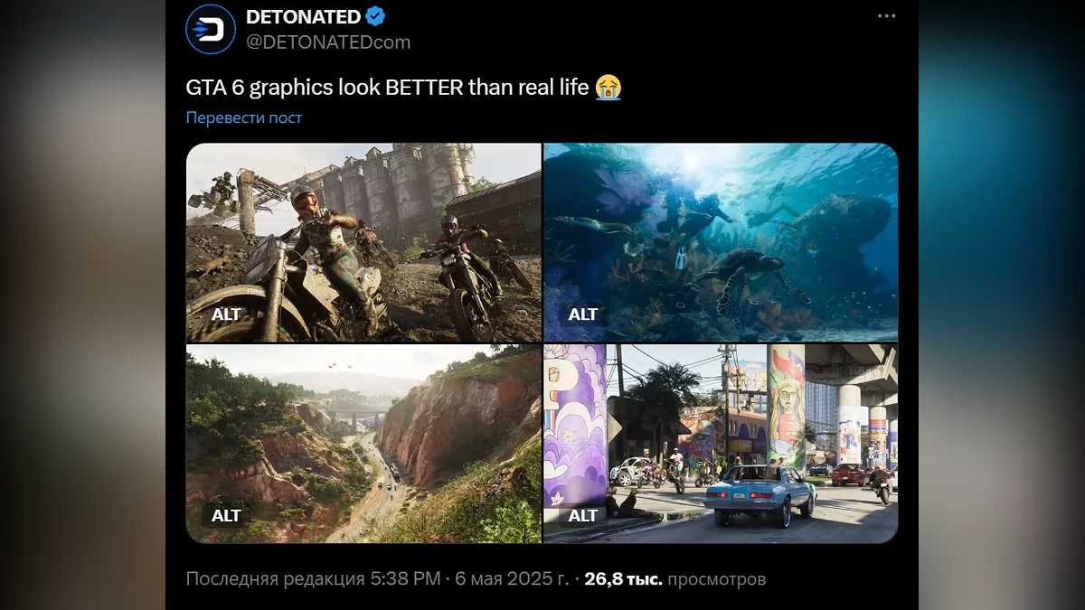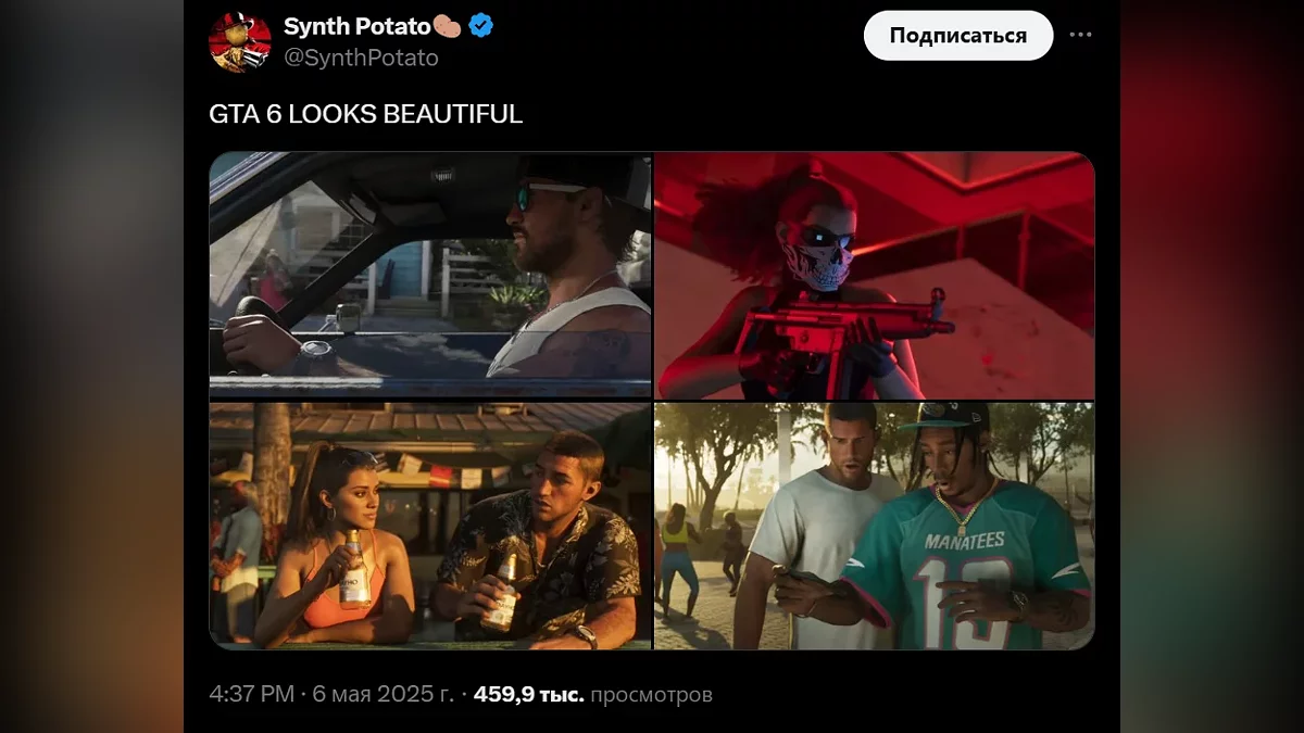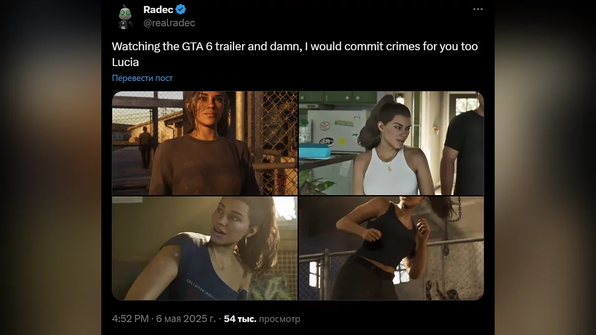 6 мая Rockstar неожиданно выпустила второй трейлер GTA 6, самой ожидаемой из будущих игр. Ролик вызвал огромную шумиху в сети. Видео собрало миллионы просмотров на YouTube, а игра попала в тренды в соцсети X. Мы решили собрать некоторые из самых популярных реакций.