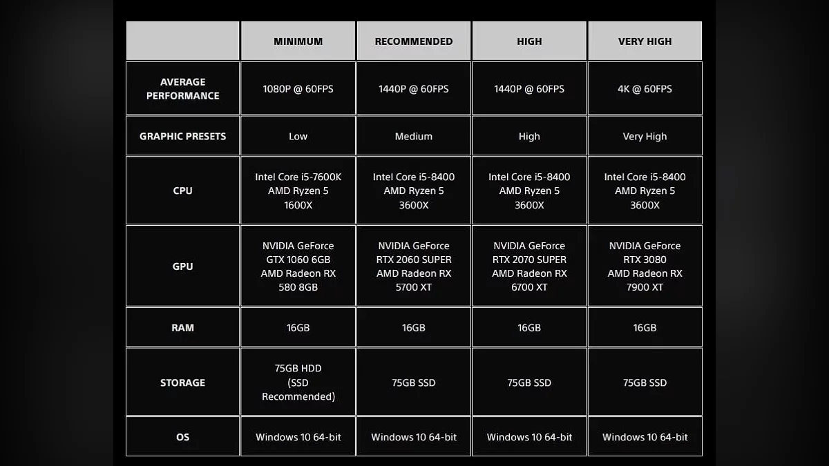 - Видеокарта: NVIDIA GeForce GTX 1060 (6 Гб) или AMD Radeon RX 580 (8 Гб);
