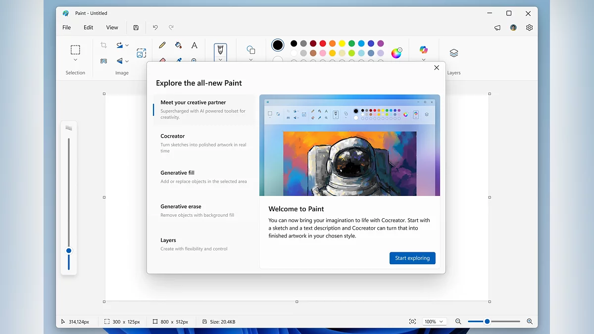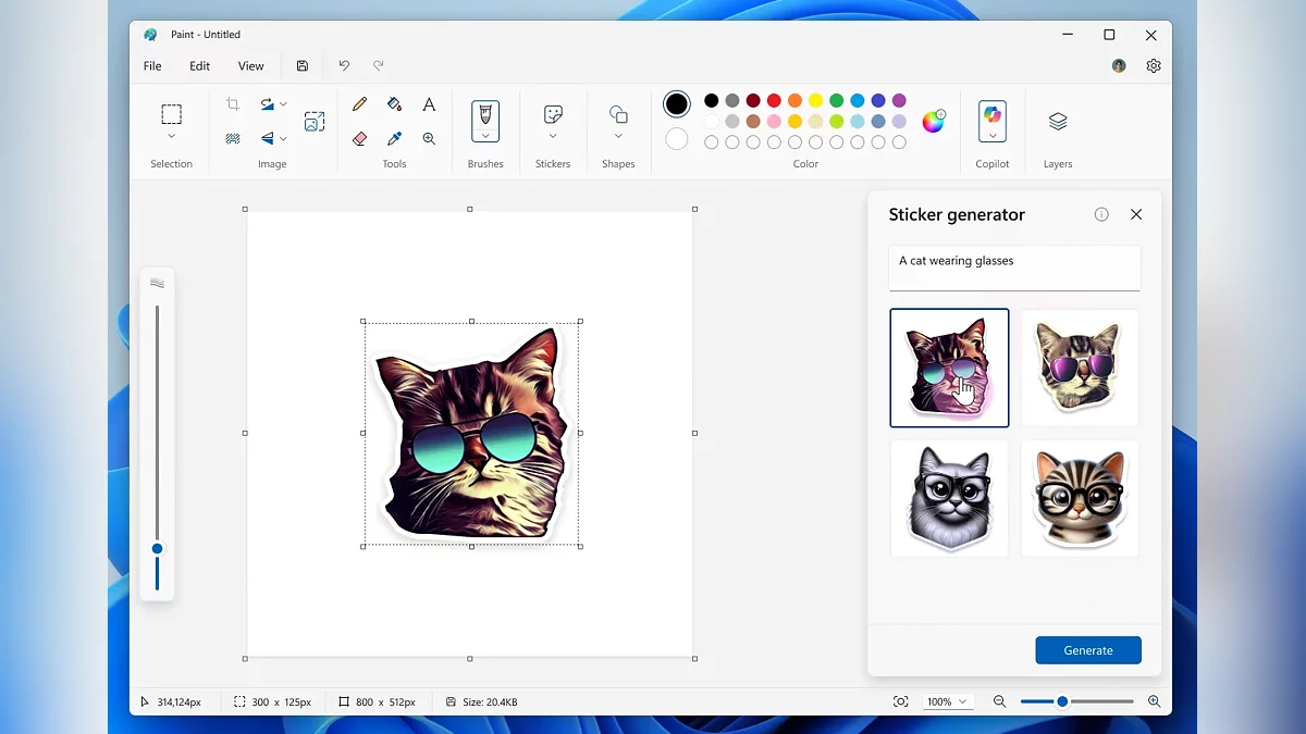 В Paint (версия 11.2504.451.0) появился генератор стикеров, создающий изображения по текстовому описанию. Для доступа к инструменту требуется аккаунт Microsoft и устройство категории Copilot+ PC. Другое нововведение — «Умное выделение», позволяющее изолировать объекты на изображении для редактирования. Также в приложении обновили стартовый экран: теперь он показывает подсказки по основным функциям, которые можно отключить или вызвать через иконку в панели инструментов.