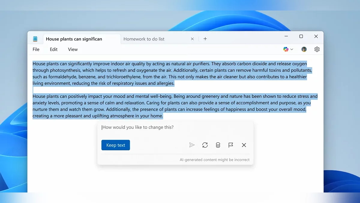 В «Блокноте» (версия 11.2504.46.0) тестируется функция Write, создающая текст на основе запроса. Пользователь может ввести инструкцию (например, «написать приветственное письмо») через контекстное меню или сочетание Ctrl + Q, а ИИ сгенерирует варианты. Результаты можно редактировать, сохранять или удалять. Для использования Write необходим аккаунт Microsoft. Владельцы подписок Microsoft 365 Personal, Family, Enterprise и Copilot Pro смогут применять функцию без ограничений. Ранее в «Блокнот» уже добавляли инструмент Rewrite для перефразирования текста.