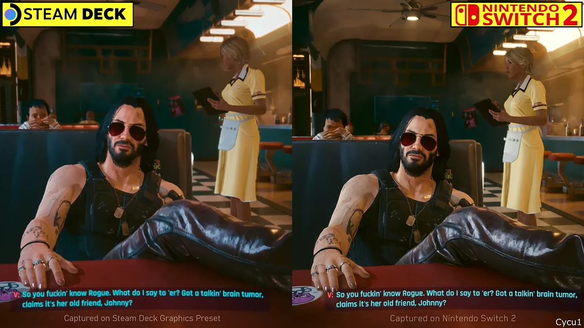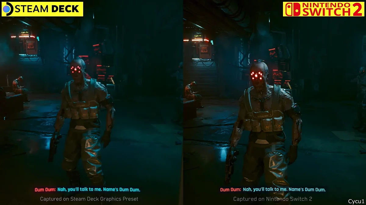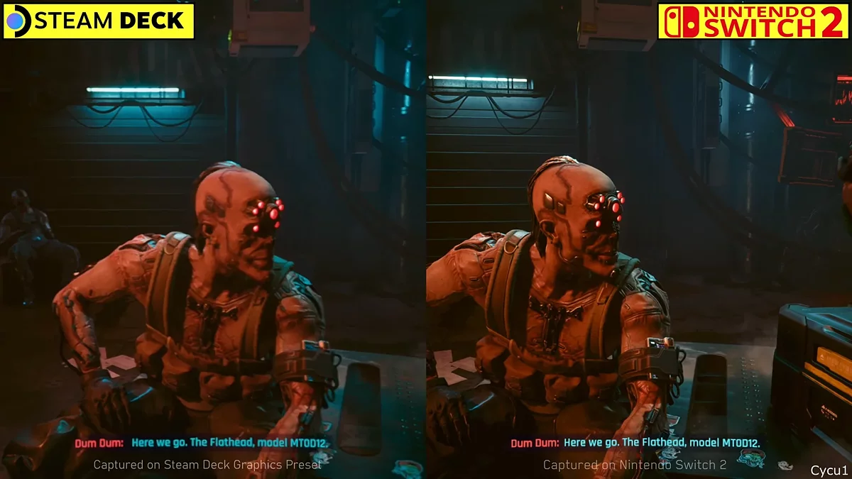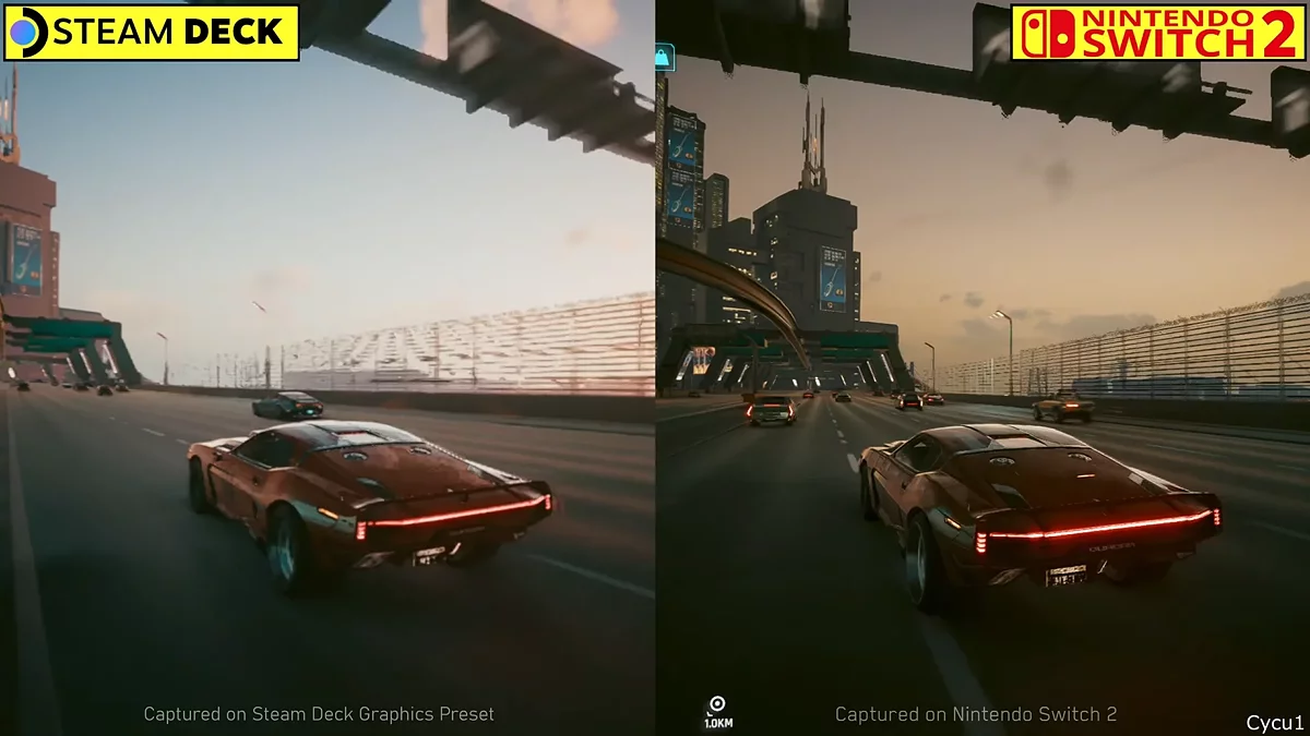 Ютубер Cycu1 опубликовал 40-минутное видео со сравнением компьютерной версии Cyberpunk 2077, запущенной на Steam Deck, с версией для консоли Nintendo Switch 2.