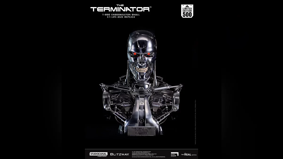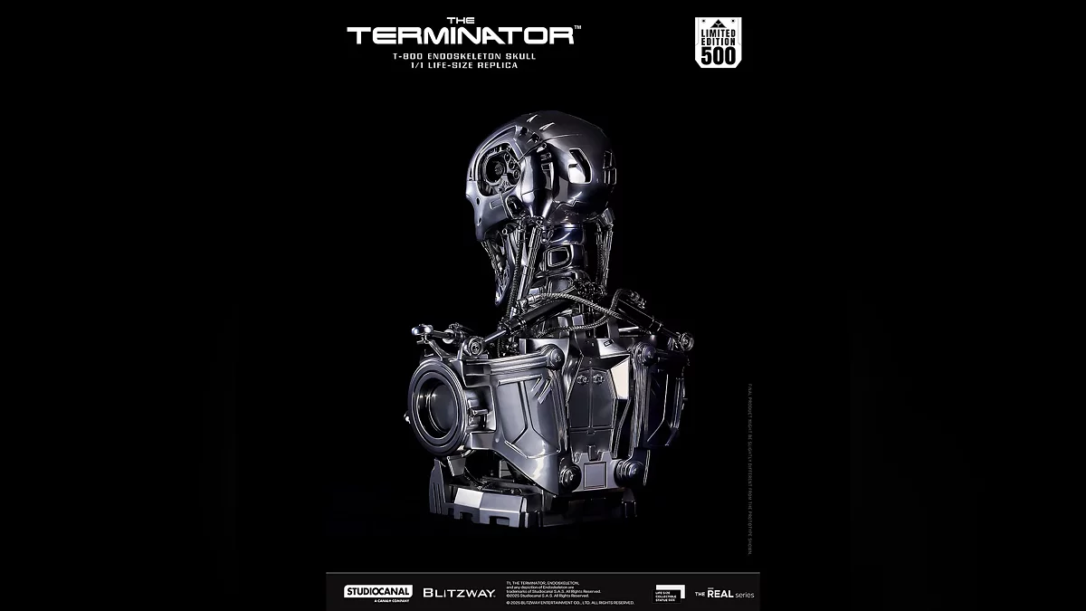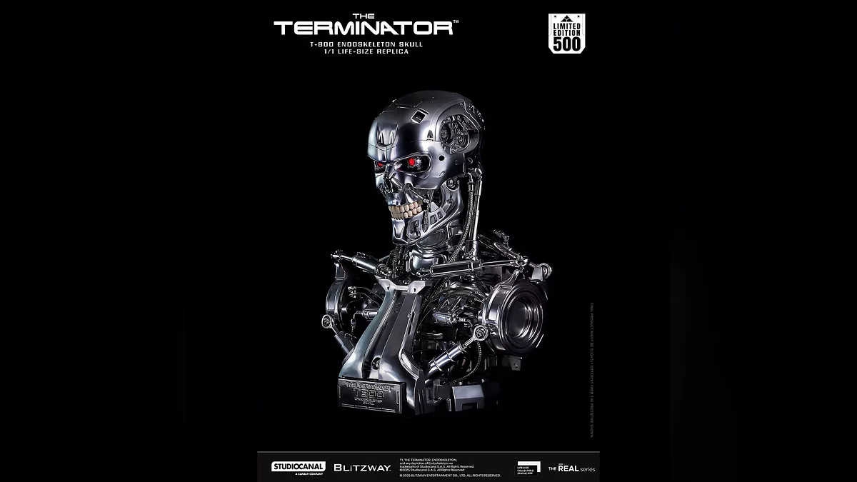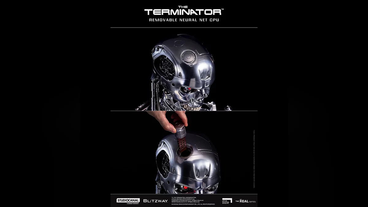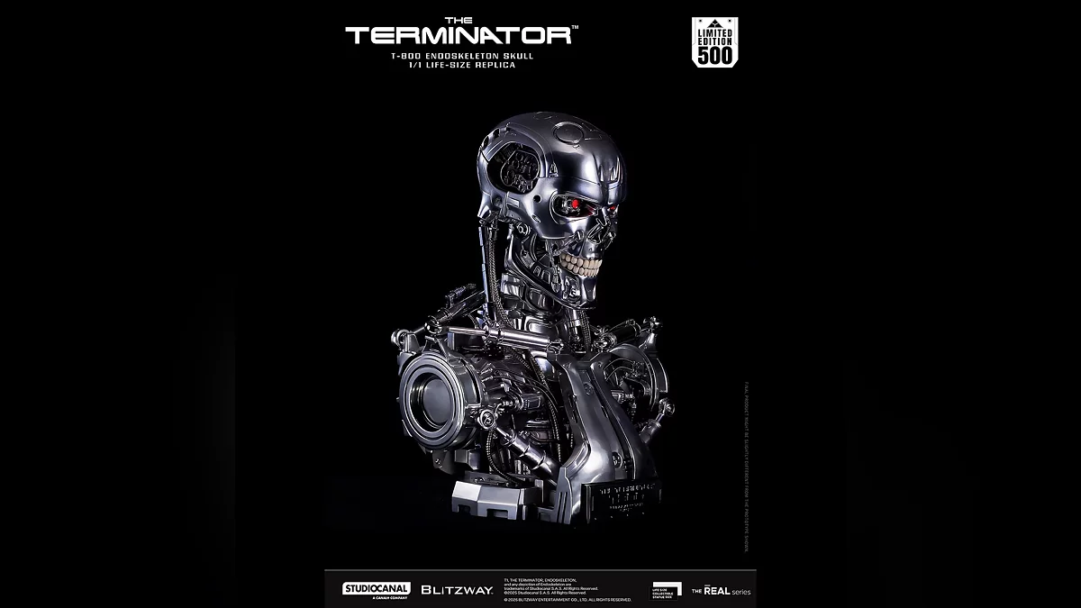 Южнокорейская компания Blitzway анонсировала полноразмерный высокодетализированный бюст Т-800 из культовых фильмов «Терминатор» и «Терминатор 2: Судный день».